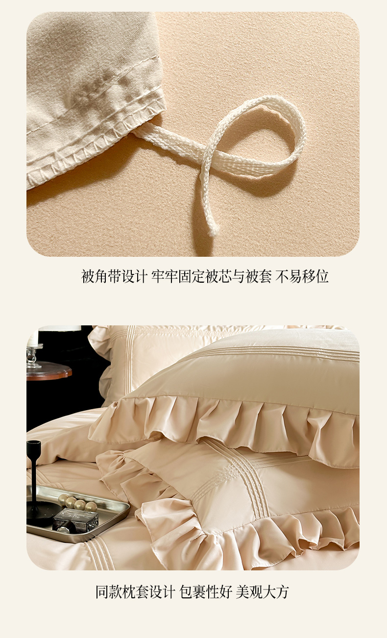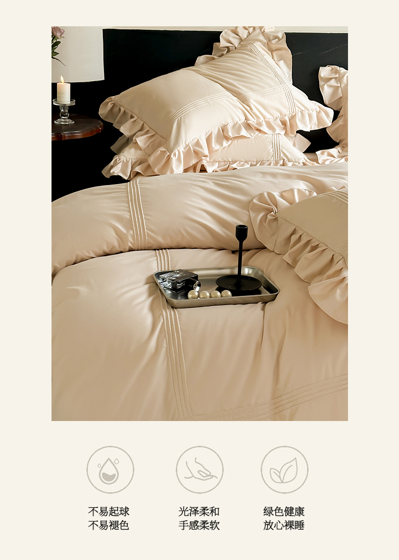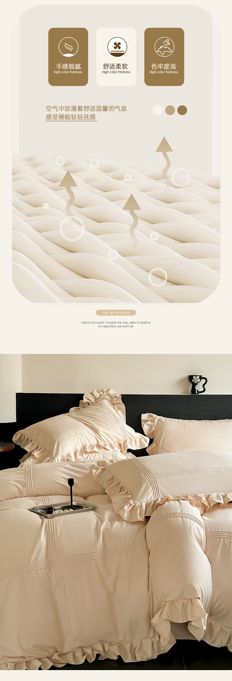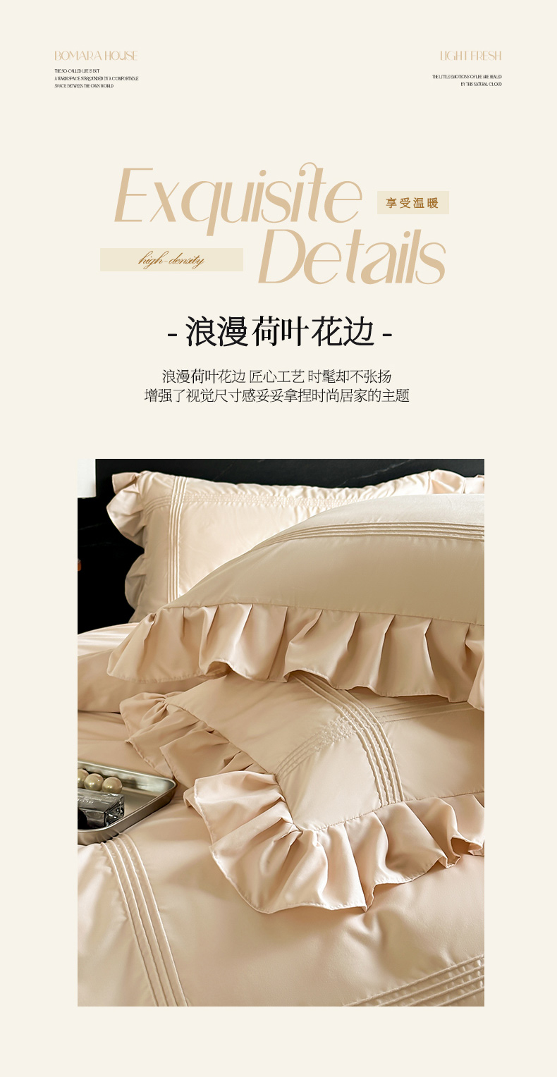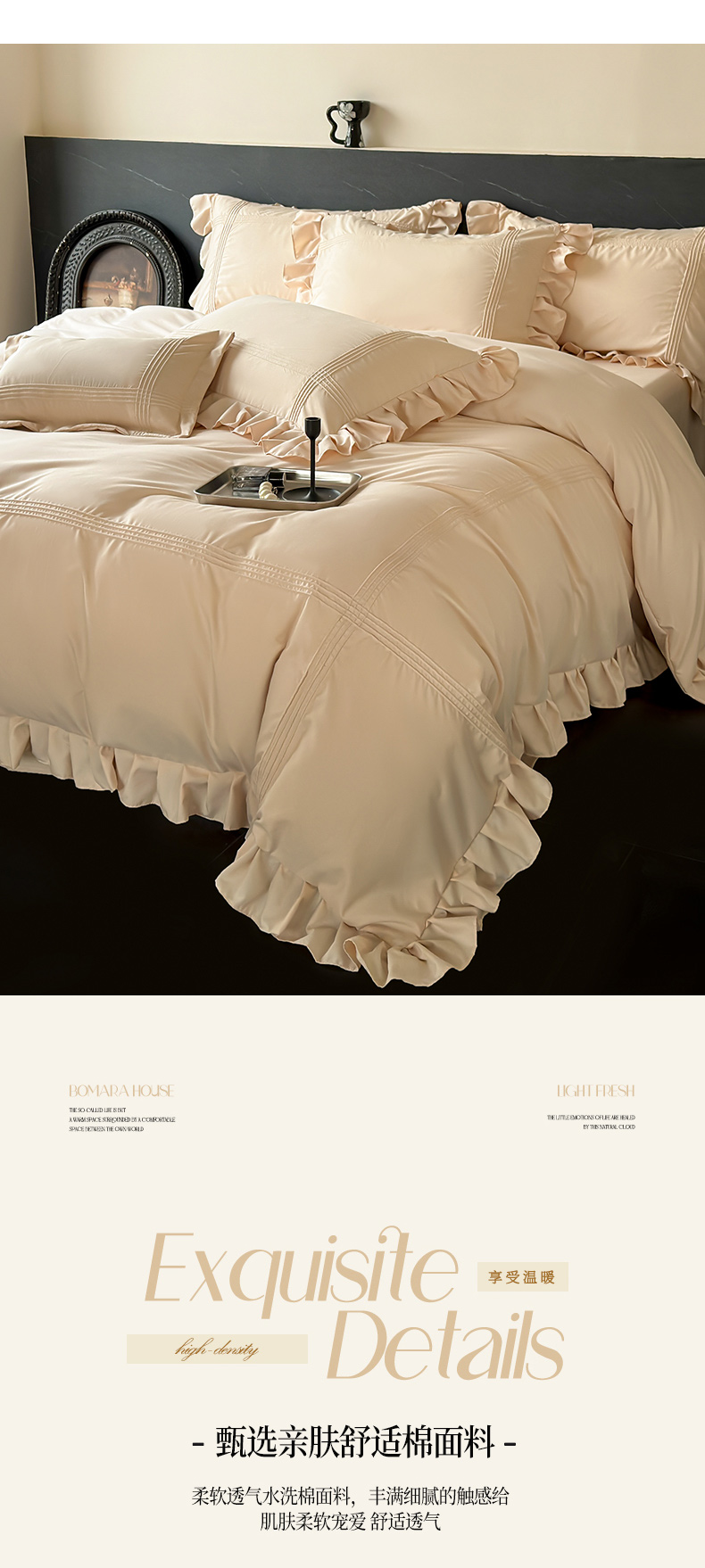 当前位置: 91家纺网 > 商品网购 > 床品套件 > 四件套 > 其它四件套 > 豪美鑫 2025新款柔肤棉刺绣公主风琳卡系列四件套 琳卡-奶咖
