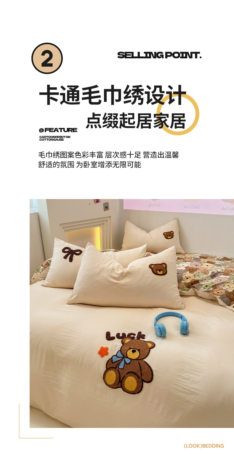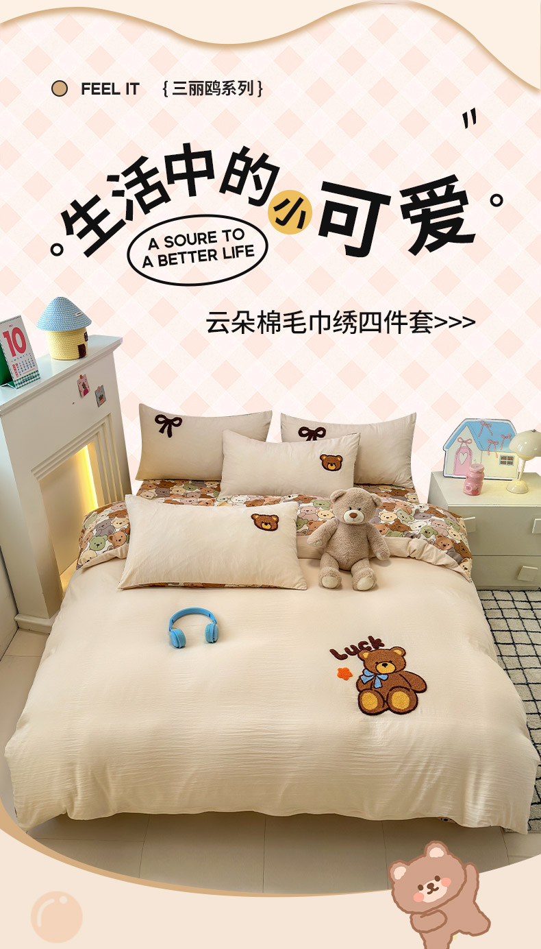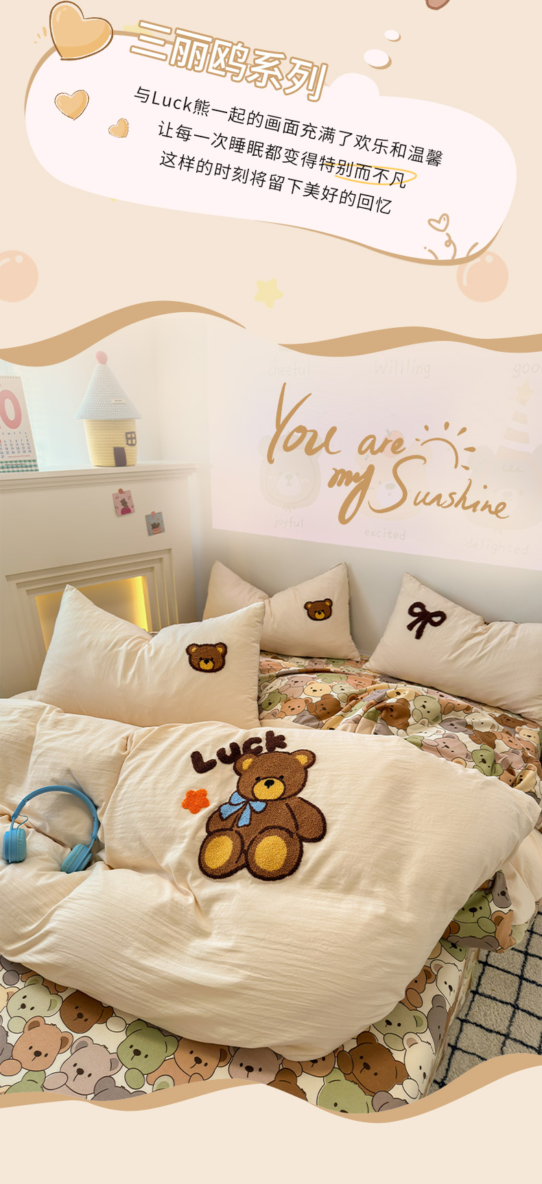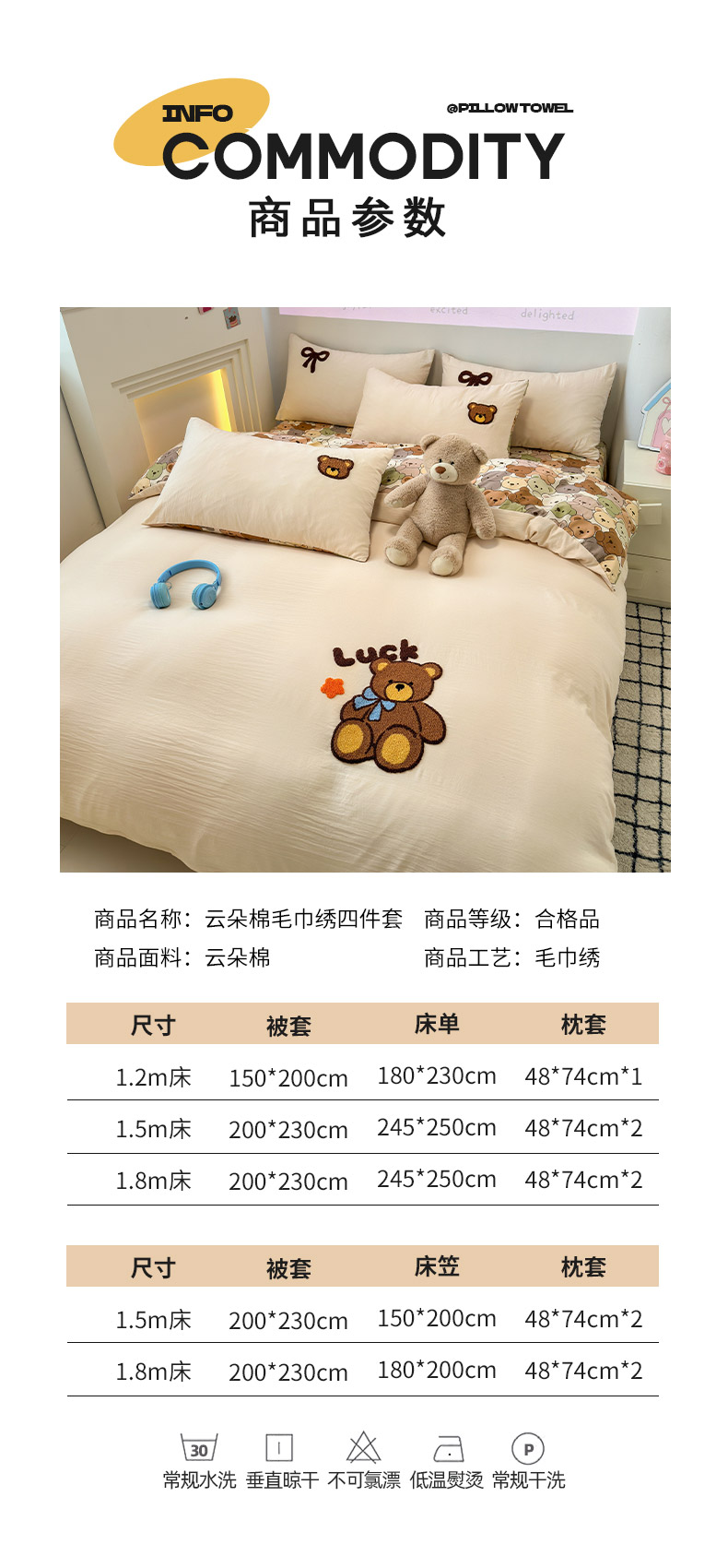 商品名称:乐坊 2025新款三丽鸥系列云朵棉毛巾绣四件套 lucky熊米