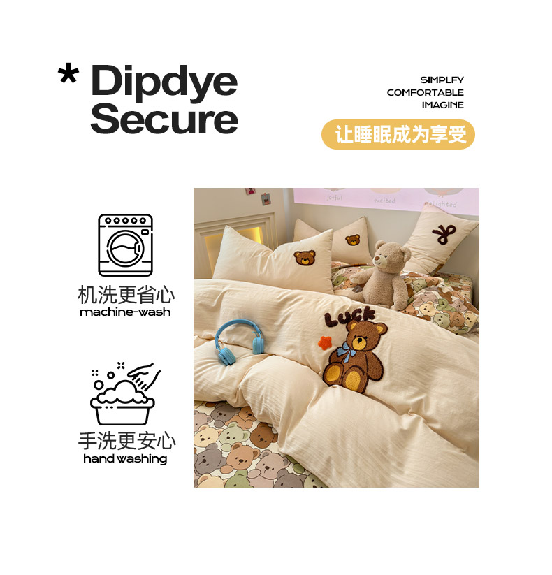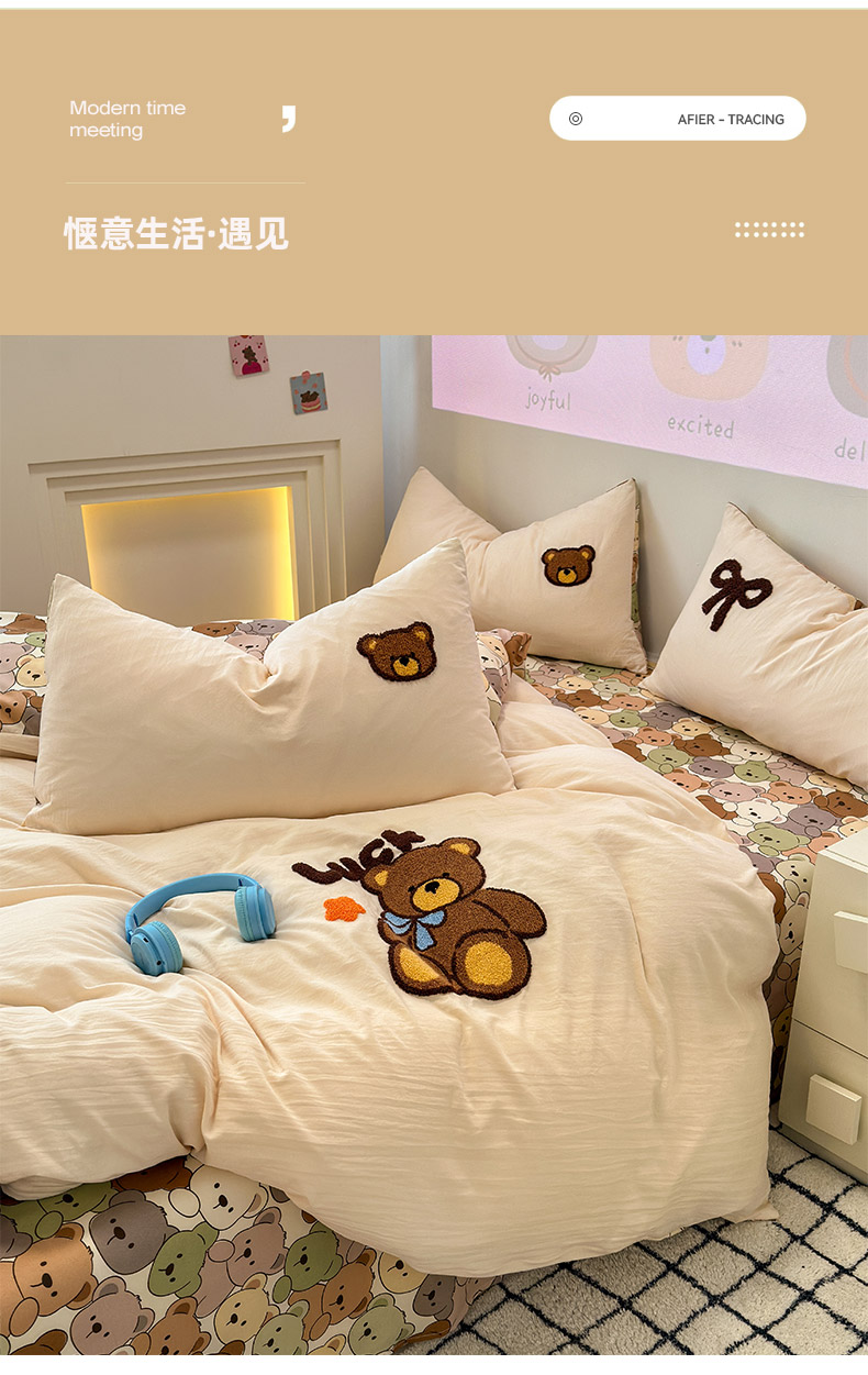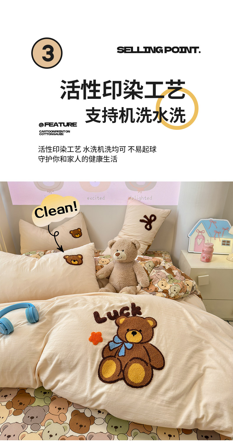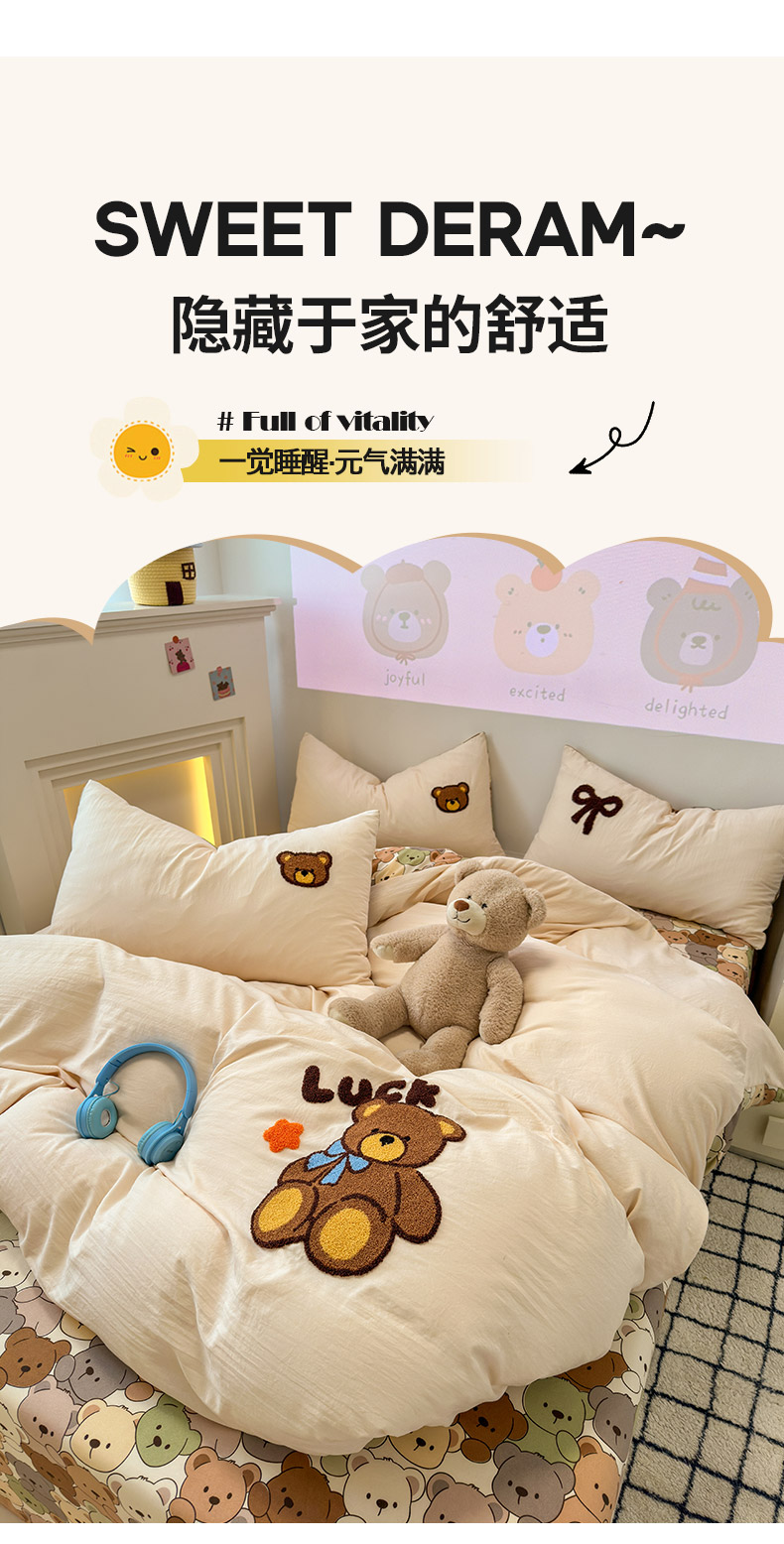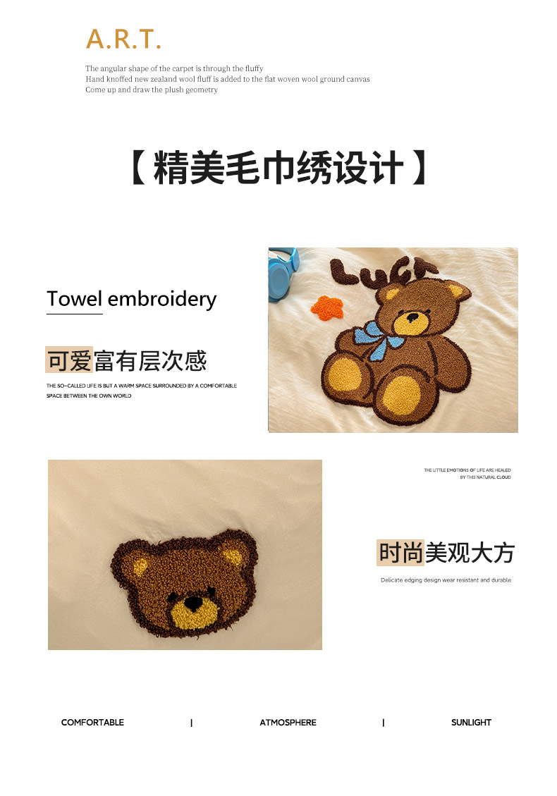 商品名称:乐坊 2025新款三丽鸥系列云朵棉毛巾绣四件套 lucky熊米