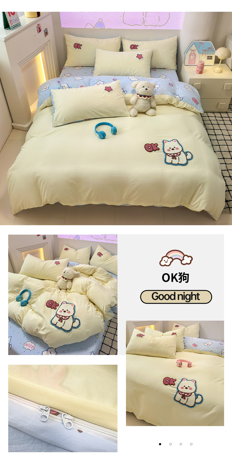 (总)乐坊 2025新款300g高克重兔绒卡通贴布绣牛奶绒四件套冬季加厚保暖,萌宠猫咪白粉,萌宠猫咪粉,可爱兔兔,快乐企鹅,美拉德狗狗,熊熊腊肠狗