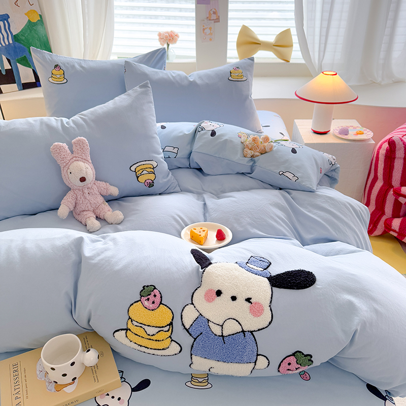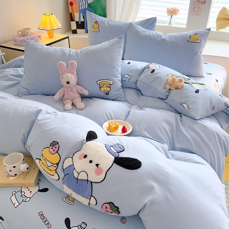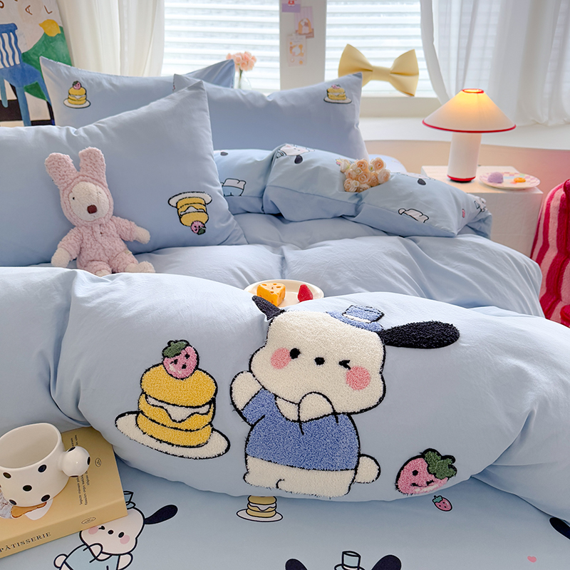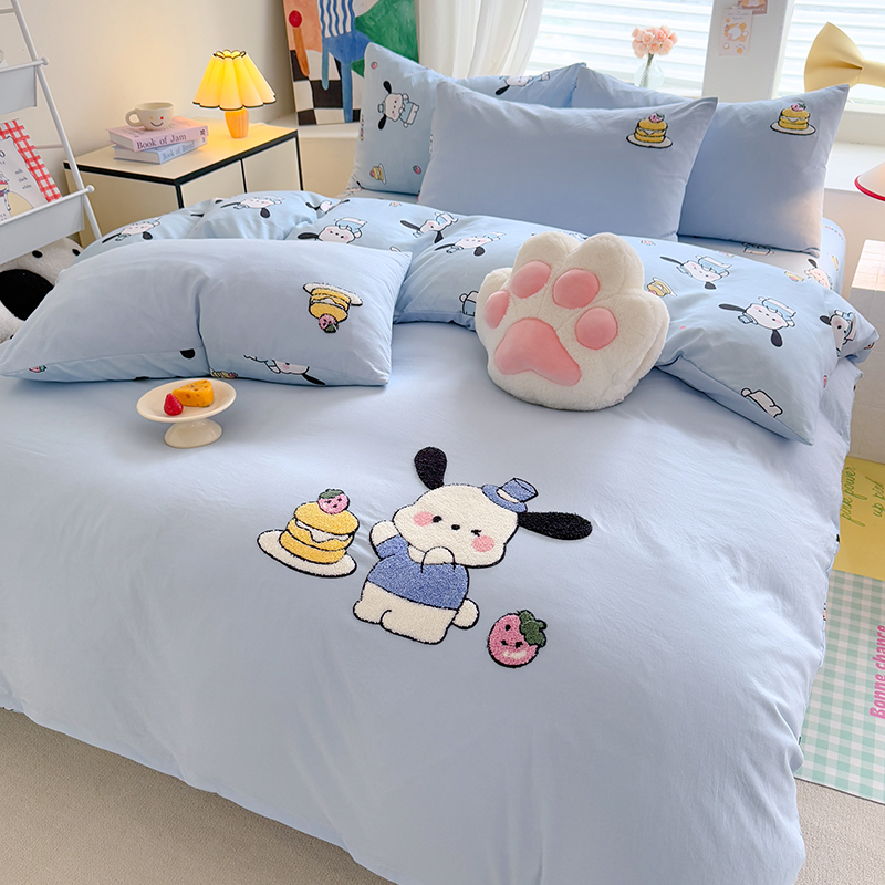 当前位置: 91家纺网 > 商品网购 > 床品套件 > 四件套 > 化纤普通四件套 > 优贝 2025爆款水洗棉云朵棉毛巾绣四件套(提供买家绣) 帕恰狗