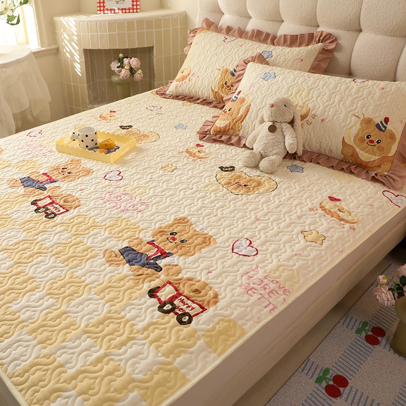 美达家纺2025新款全棉夹棉床垫 黄油小熊