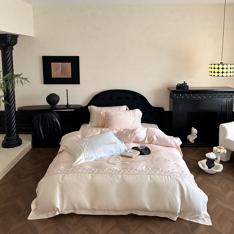 (总)初拾 2025新款100s双股澳棉刺绣四件套-赫拉公主(棉),棉 赫拉公主-海边蓝,棉 赫拉公主-奶油粉