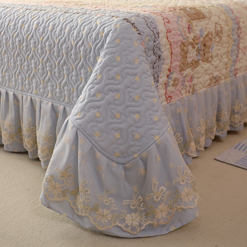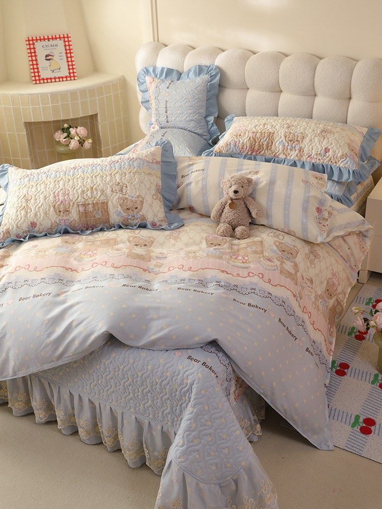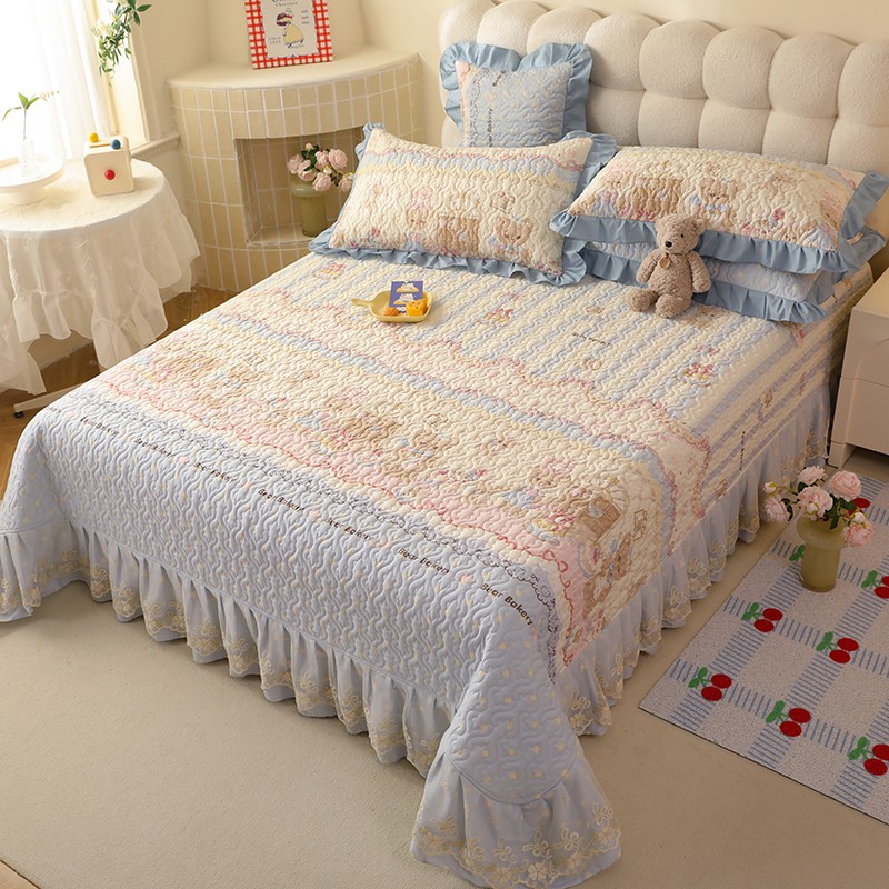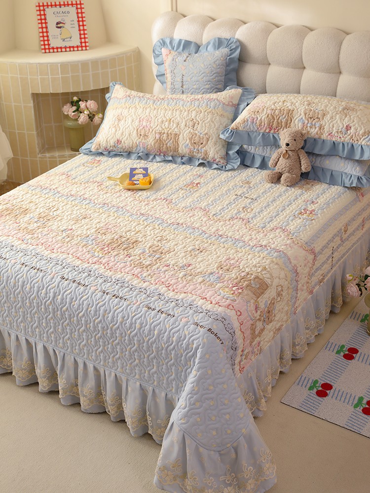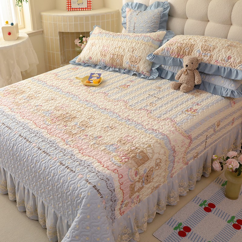 美达家纺2025新款全棉蕾丝边单床盖 熊仔派对