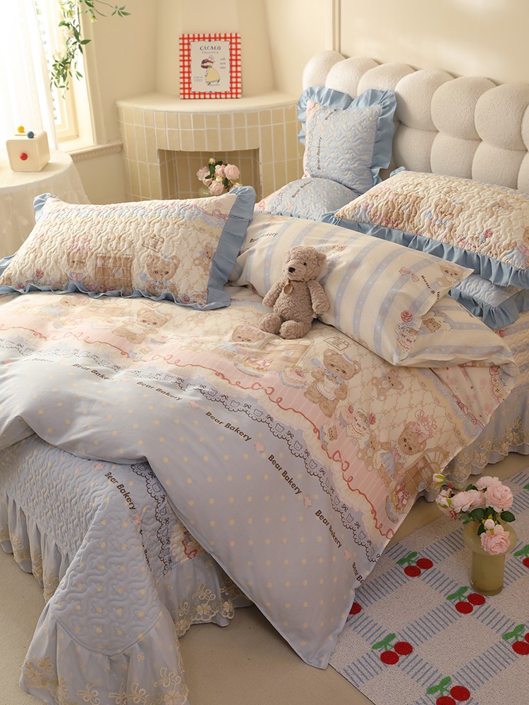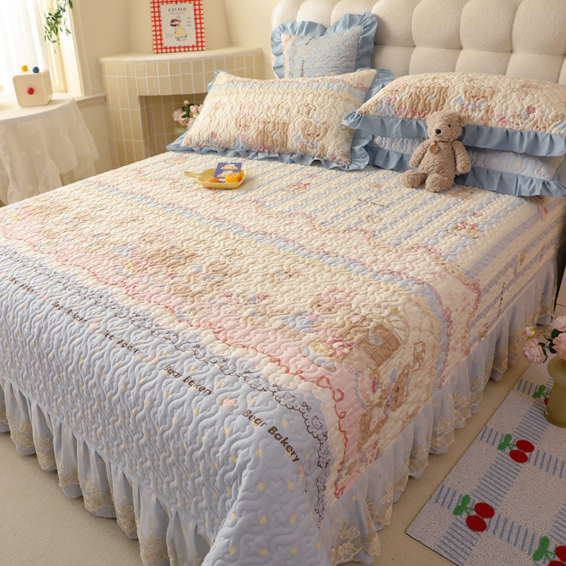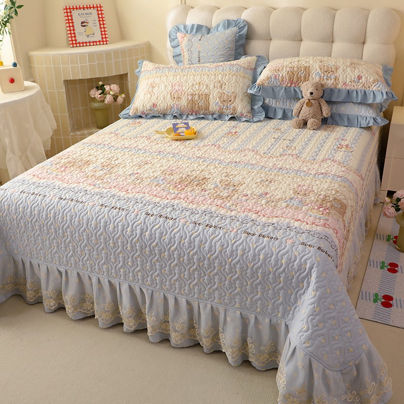 商品名称:美达家纺2025新款全棉蕾丝边单床盖 熊仔派对