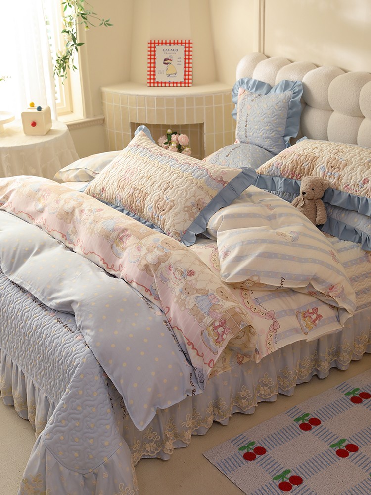 (总)美达家纺 2025新款全棉夹棉密道款床盖四件套(可定制),柏林梦境-绿,贝贝南瓜,风之恋,花枝摇曳,加州甜心-粉,暮风寻蝶,奶呼兔兔-米,暖阳绿意,小橙橘