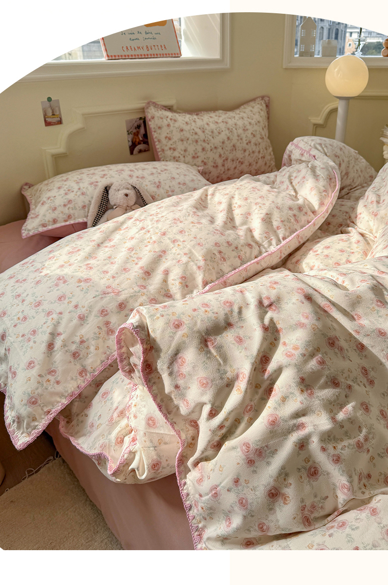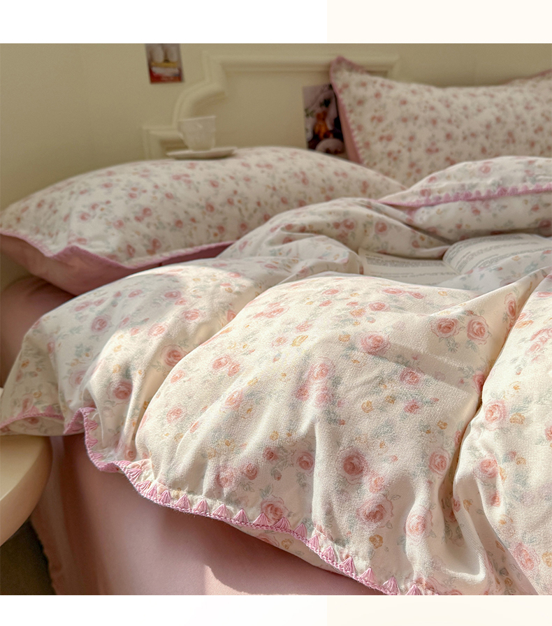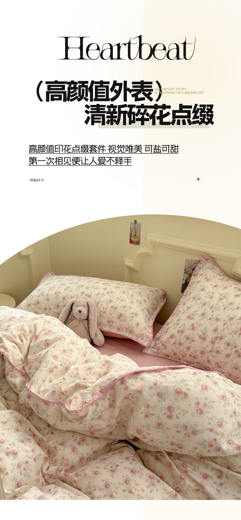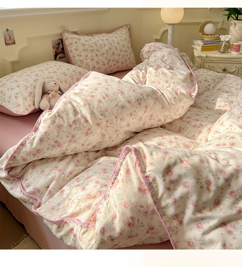 (总)韩都家居 2025新款法式花边印花牛奶绒四件套,茶花,豹纹咖,画蝶,加州风情,洛莉,陌离,南瓜,岁月留声,忘忧,艺境