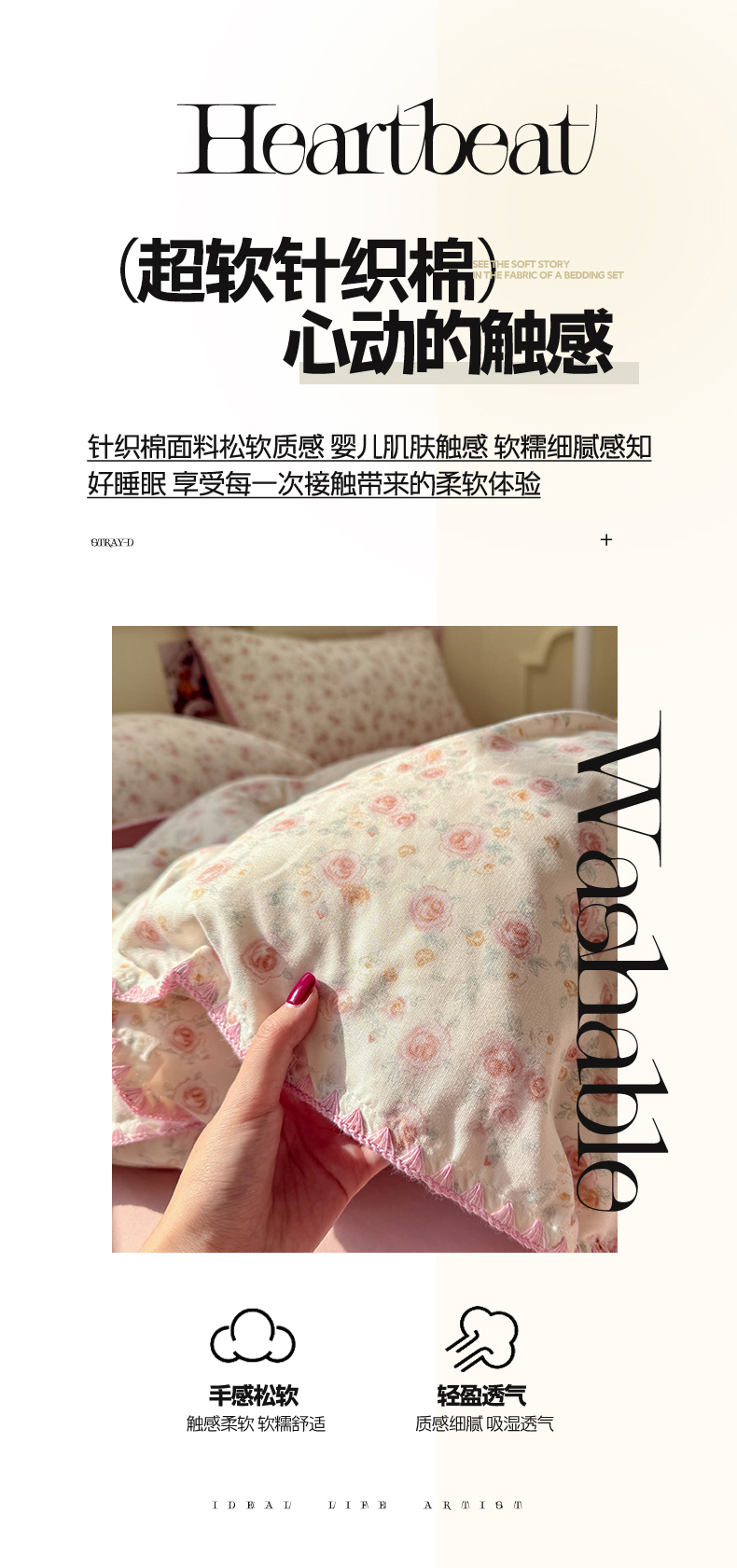 商品名称:韩都家居2025新款水洗双层纱针织棉三角针四件套(包含买家秀) 赛琳娜