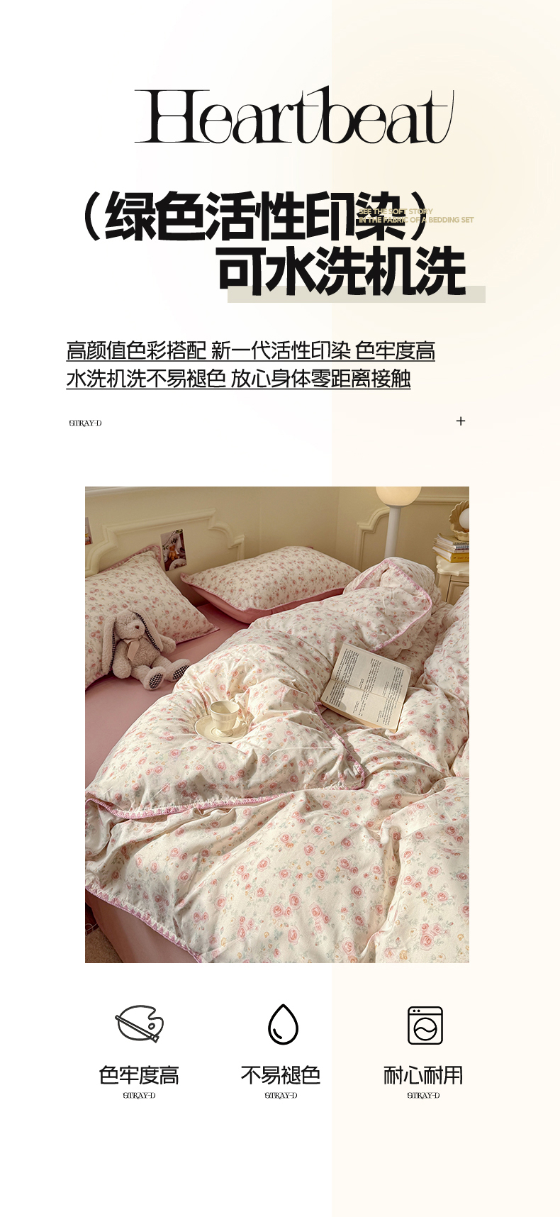 (总)韩都家居 2023新款花边刺绣玫瑰之约系列四件套,小情歌-奶白,小情歌-藕粉,玫瑰之约-红,玫瑰之约-黑