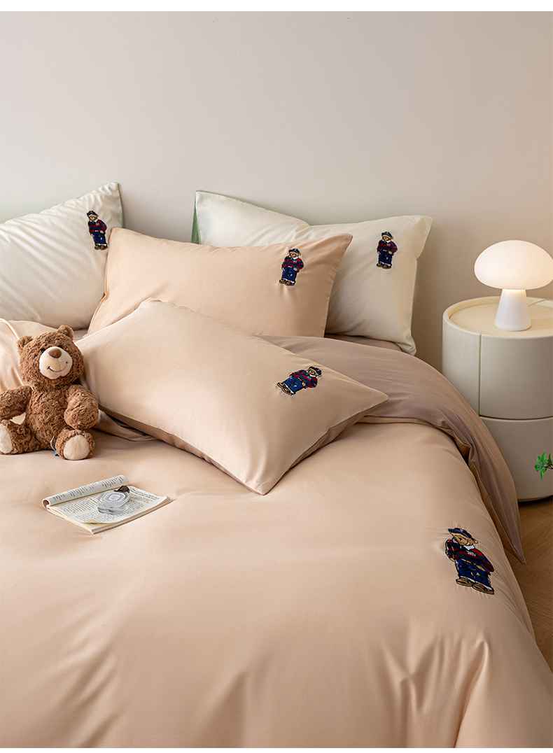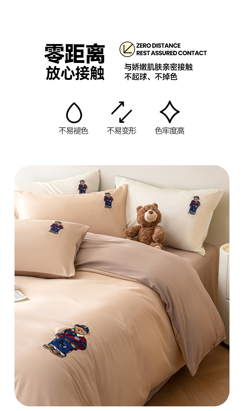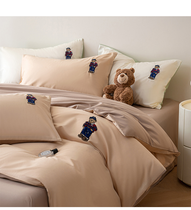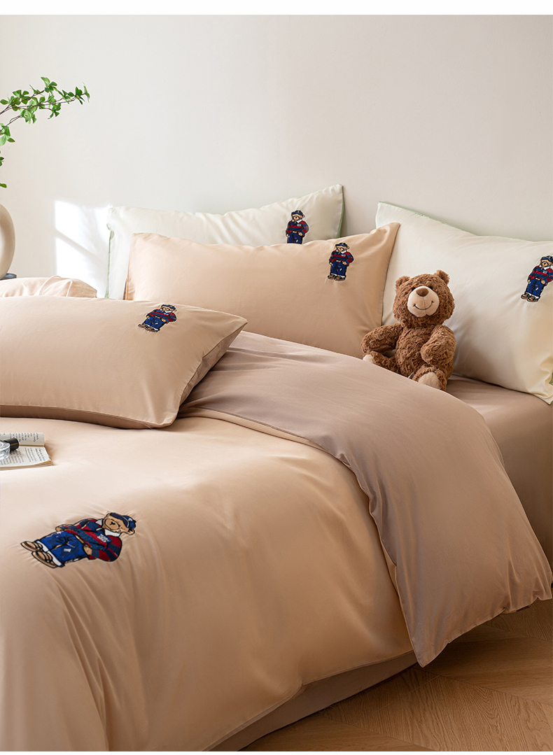 澳梵家居2025新款A类裸睡级全棉刺绣四件套-英伦小熊 英伦熊-焦糖色