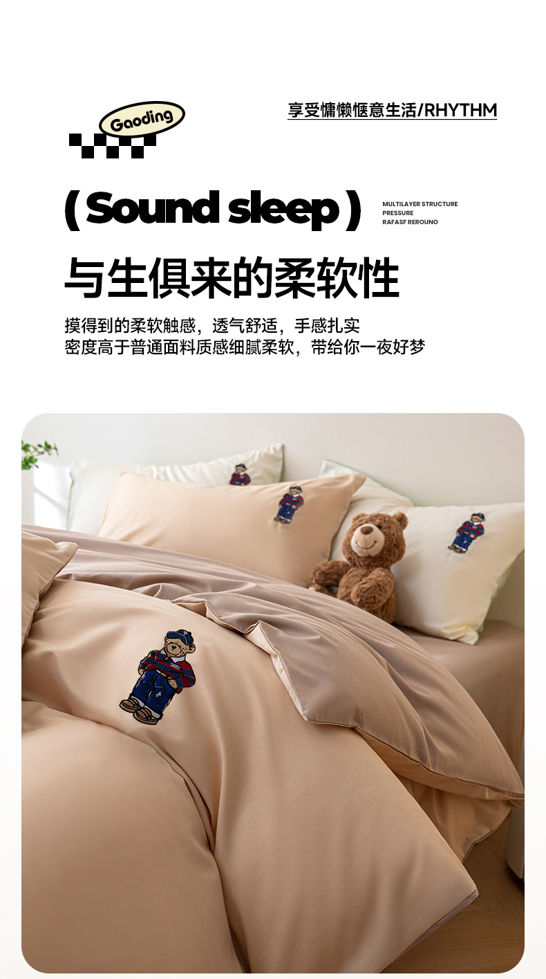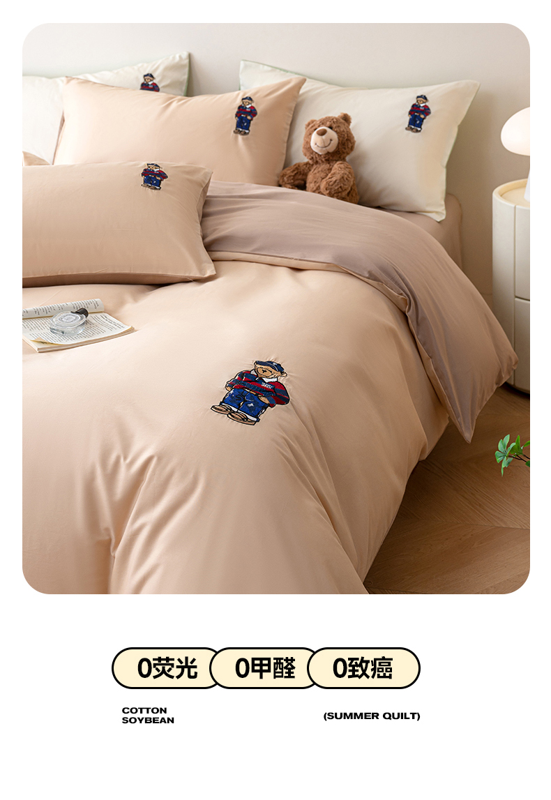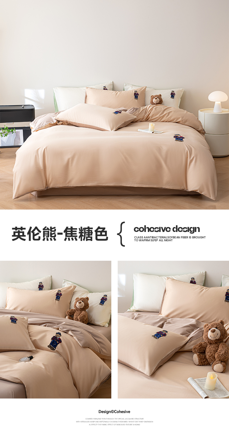 商品名称:澳梵家居2025新款A类裸睡级全棉刺绣四件套-英伦小熊 英伦熊-焦糖色