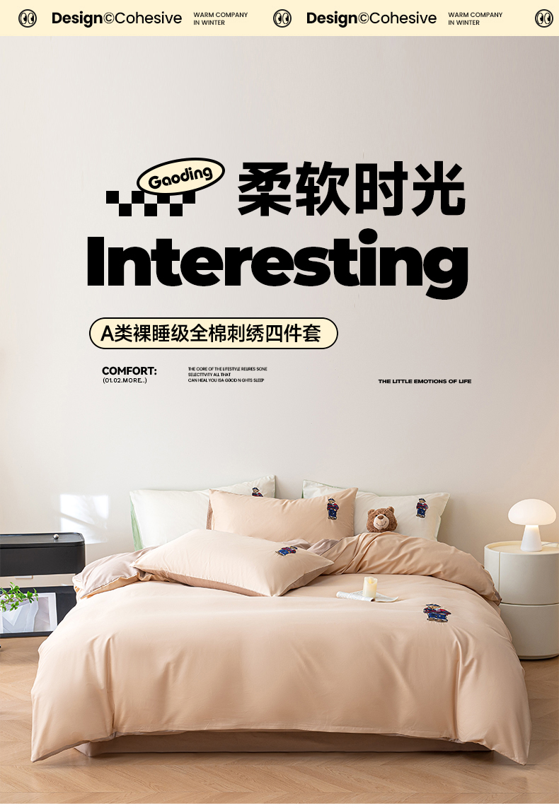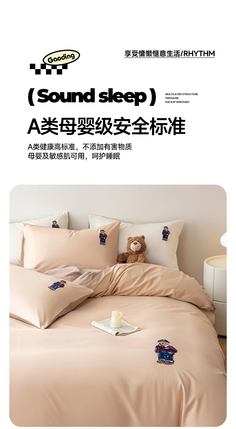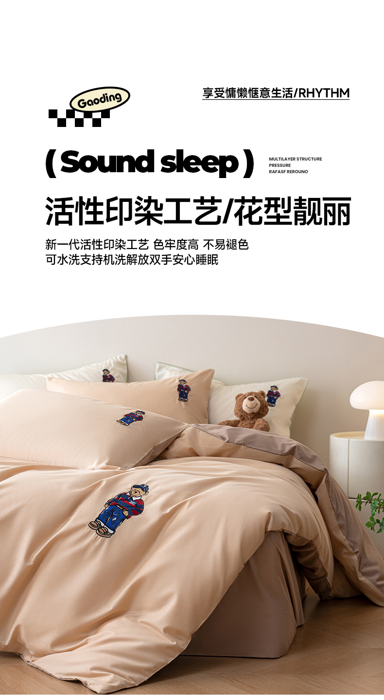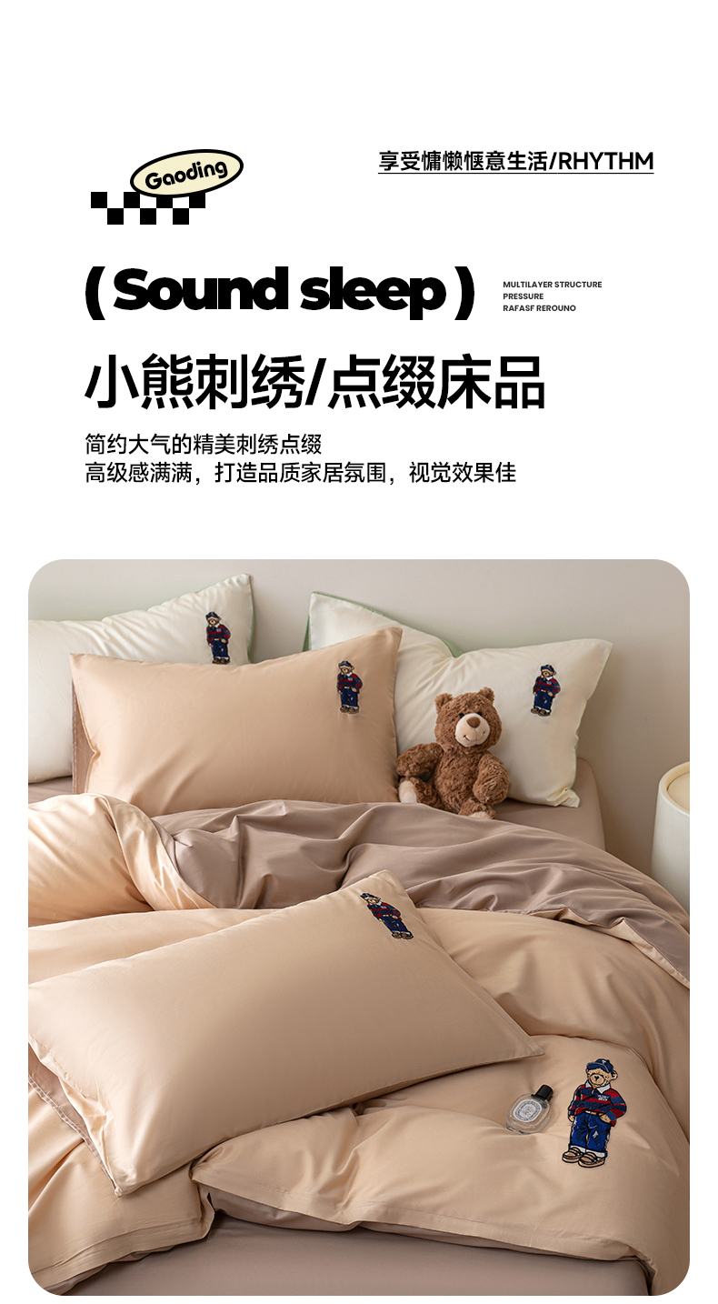 商品名称:澳梵家居2025新款A类裸睡级全棉刺绣四件套-英伦小熊 英伦熊-焦糖色