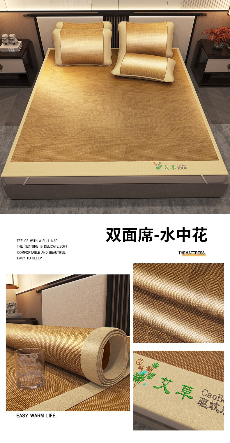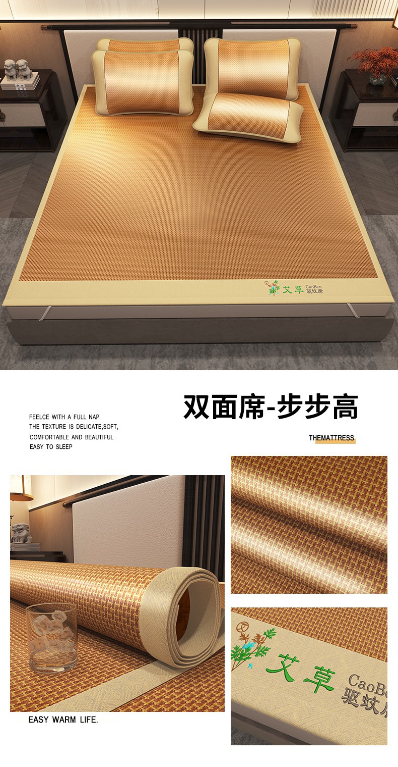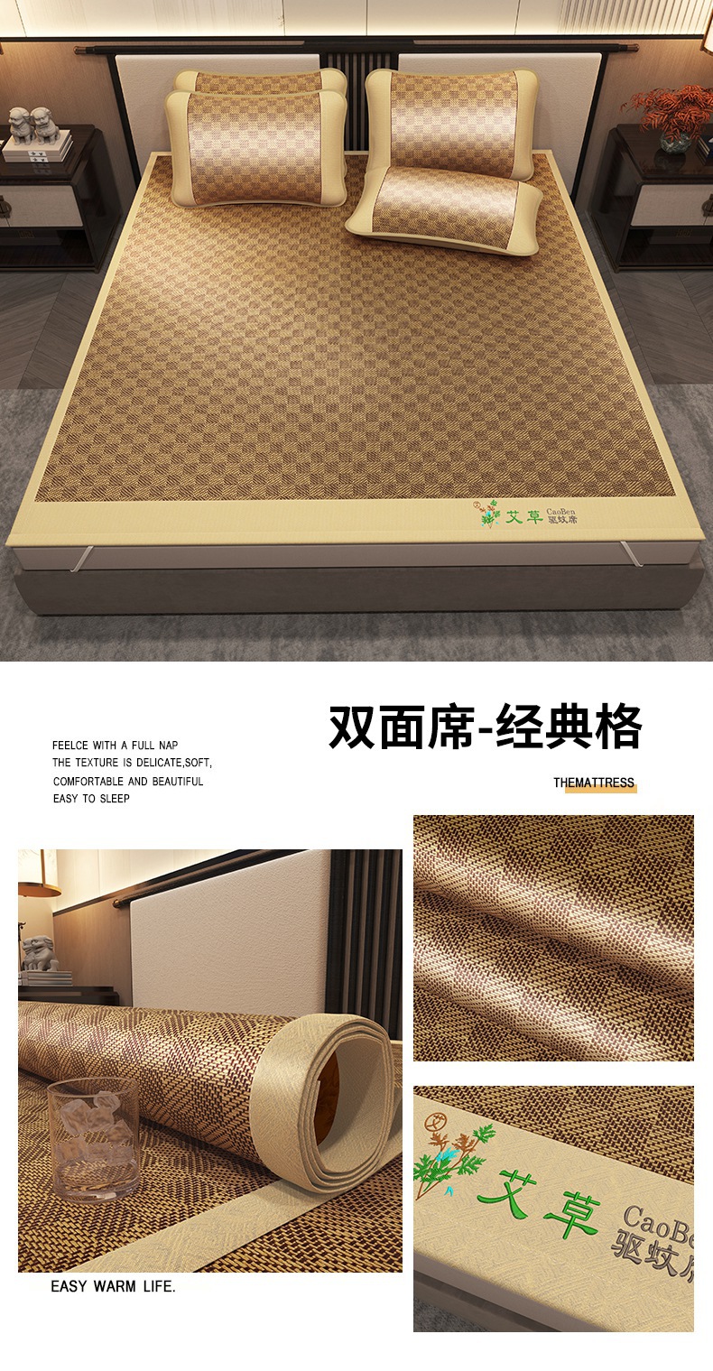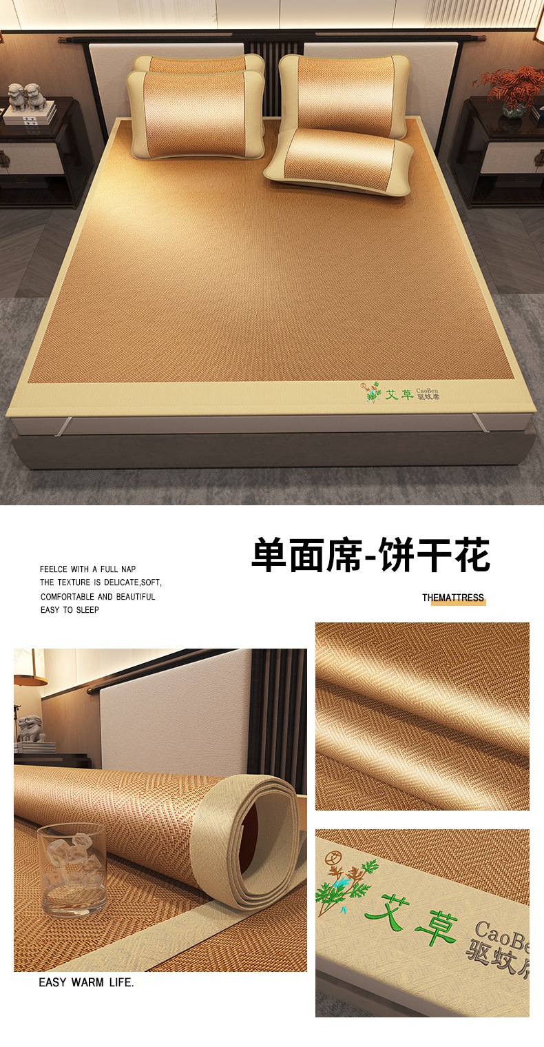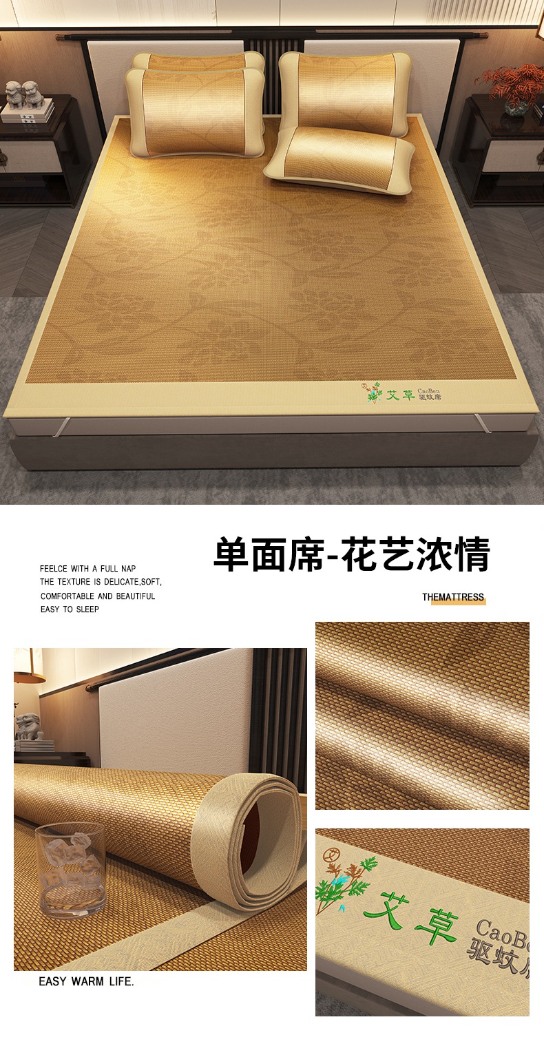 • 91家纺网 家纺一手货源 找家纺 (总)席佬大  2025新款艾草单双面古藤宽边绣花冰丝席-套件