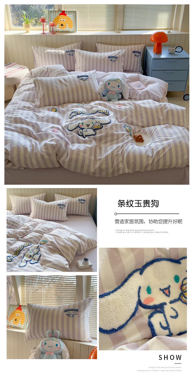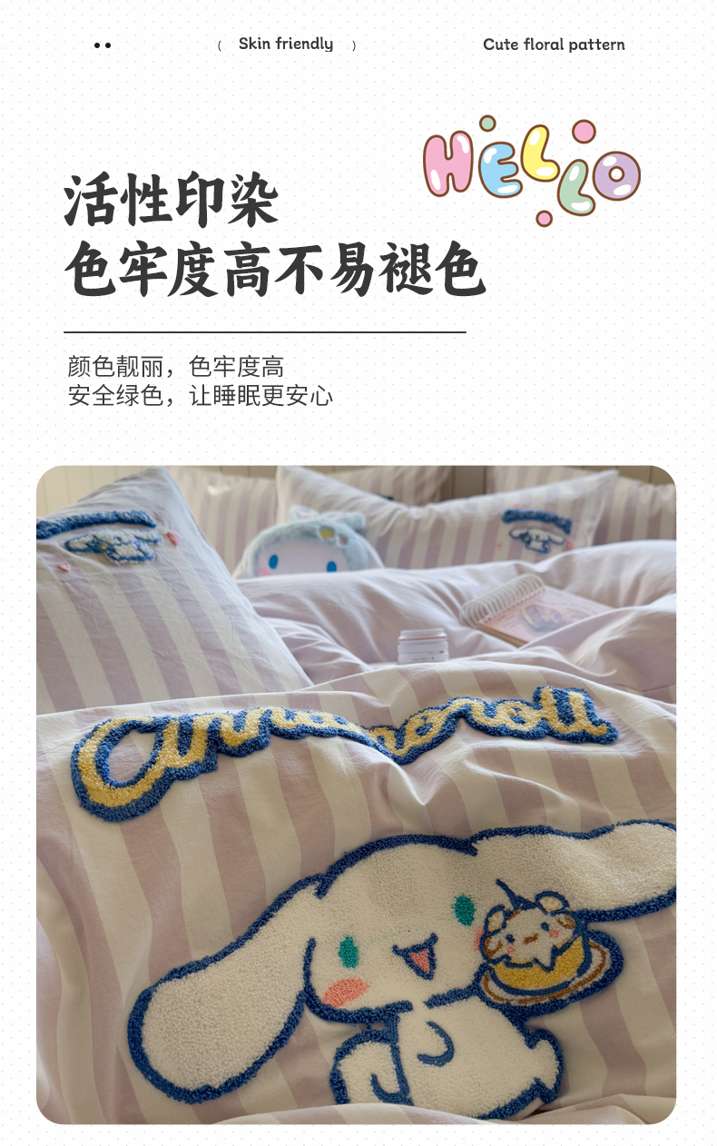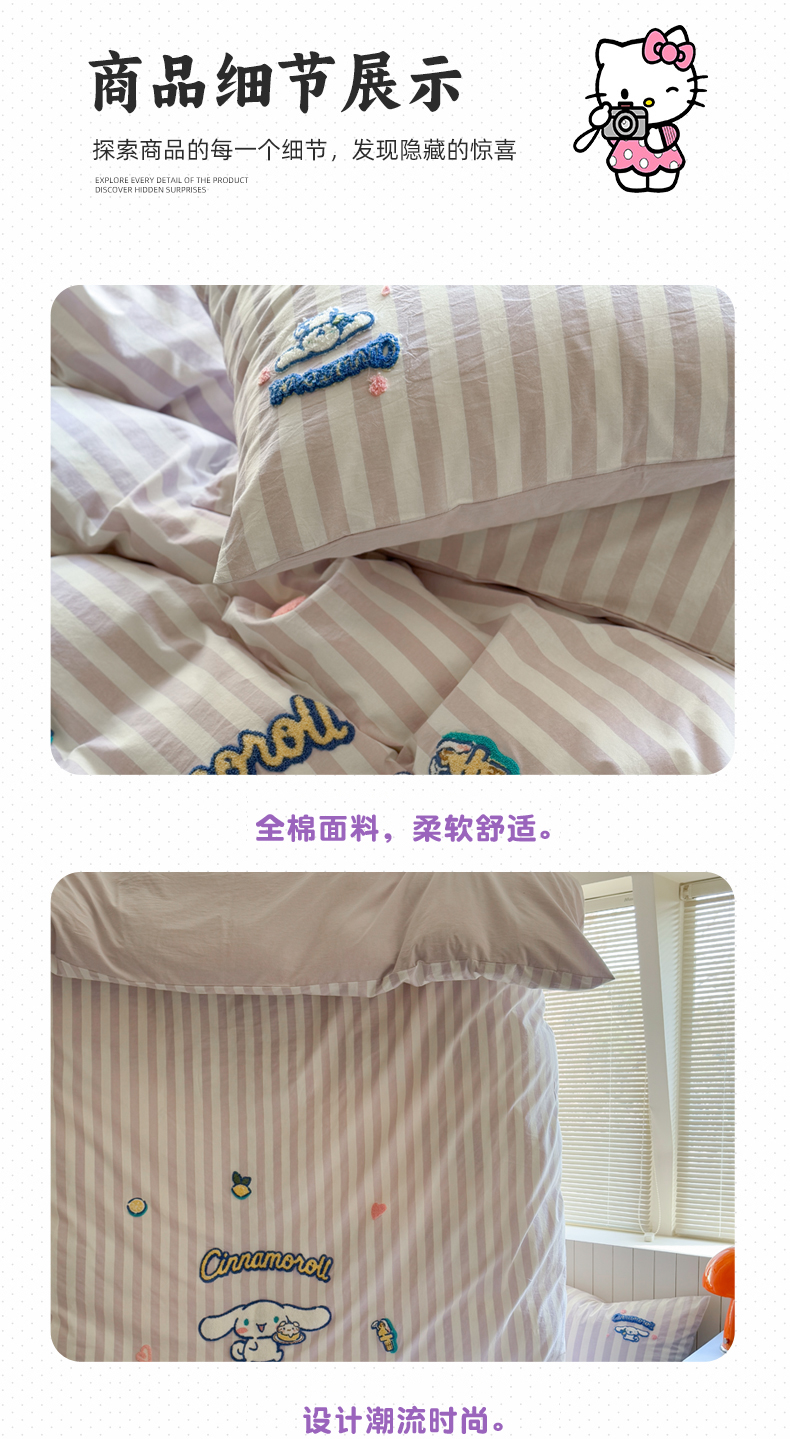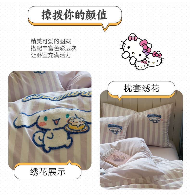 (总)金爱家 2025新款A类三丽鸥正版授权云柔水洗棉兔毛贴布绣刺绣软糯系列四件套,云柔水洗棉-贴布绣粉格KT,云柔水洗棉-贴布绣蓝格布丁狗,云柔水洗棉-贴布绣蓝格KT,云柔水洗棉-贴布绣美乐蒂,云柔水洗棉-贴布绣萌萌布丁狗,云柔水洗棉-贴布绣你好大耳狗,云柔水洗棉-贴布绣紫格库洛米
