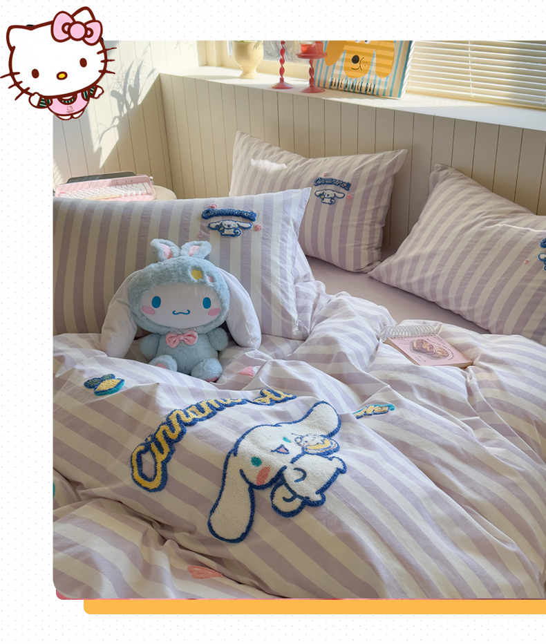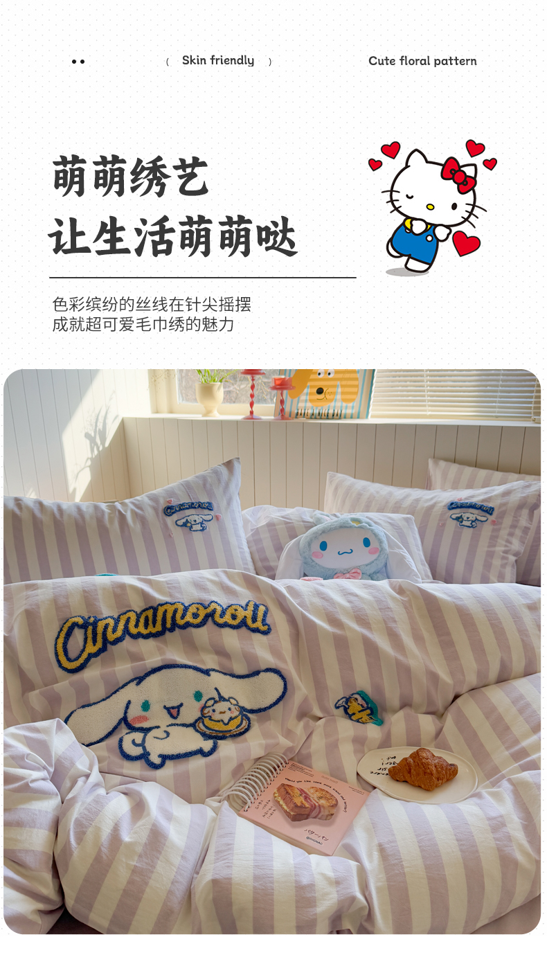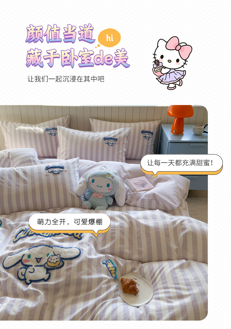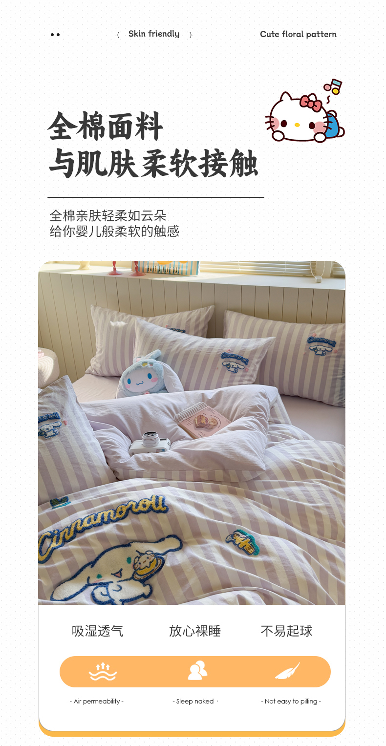 (总)金爱家 2025新款A类三丽鸥正版授权云柔水洗棉兔毛贴布绣刺绣软糯系列四件套,云柔水洗棉-贴布绣粉格KT,云柔水洗棉-贴布绣蓝格布丁狗,云柔水洗棉-贴布绣蓝格KT,云柔水洗棉-贴布绣美乐蒂,云柔水洗棉-贴布绣萌萌布丁狗,云柔水洗棉-贴布绣你好大耳狗,云柔水洗棉-贴布绣紫格库洛米