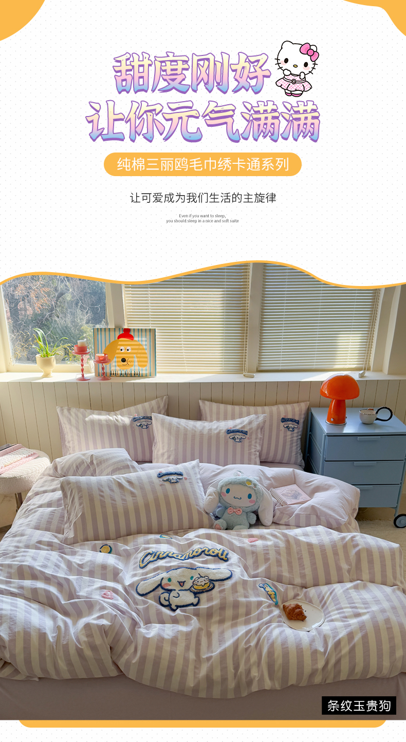 (总)金爱家 2026新款纯棉三丽鸥毛巾绣四件套,棉毛巾绣-布丁恰恰狗,棉毛巾绣-呆萌库洛米,棉毛巾绣-粉格爱心kt,棉毛巾绣-粉红大耳狗,棉毛巾绣-开心大耳狗,棉毛巾绣-萌萌美乐蒂,棉毛巾绣-紫格爱心kt