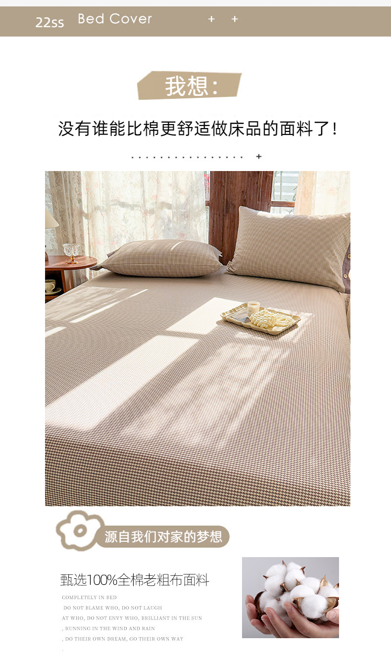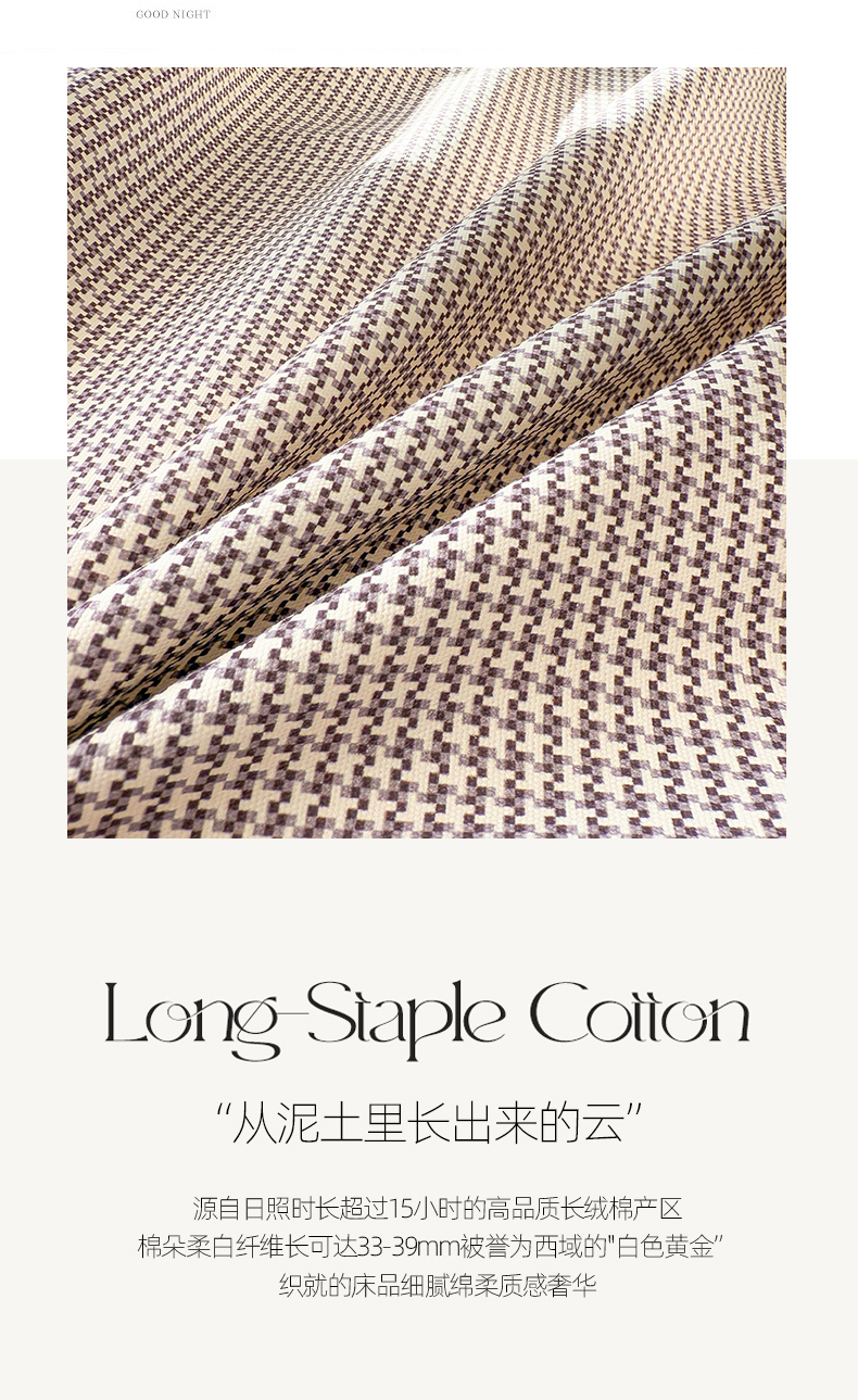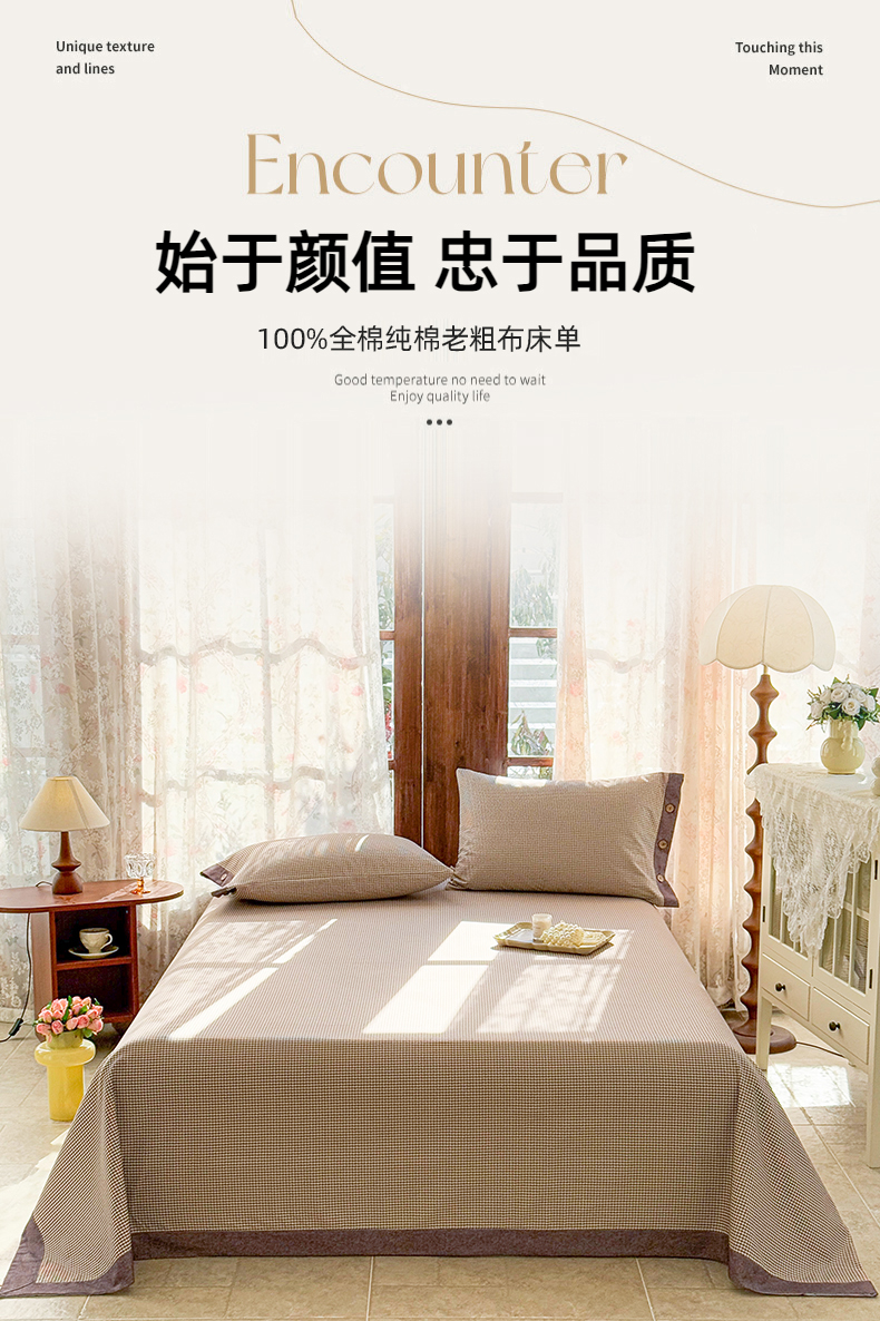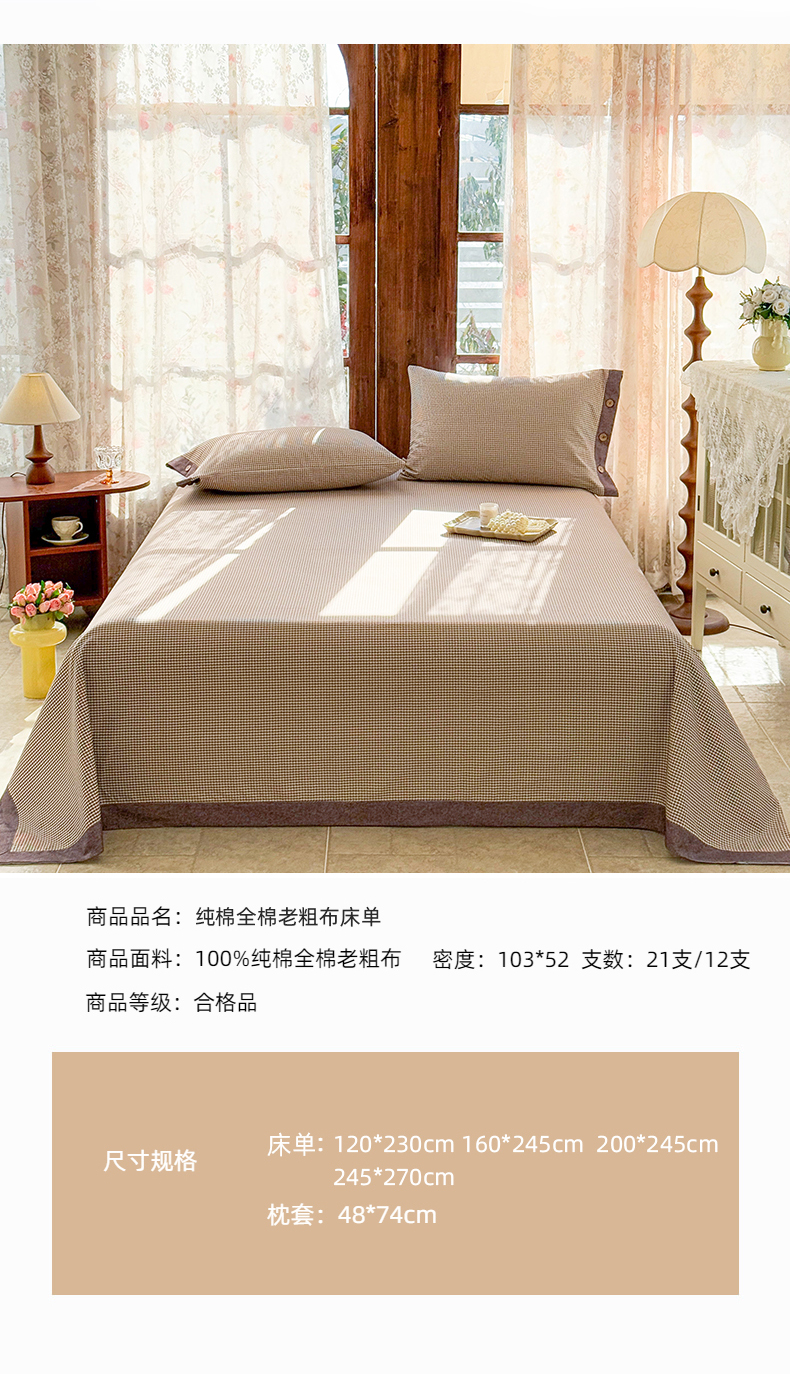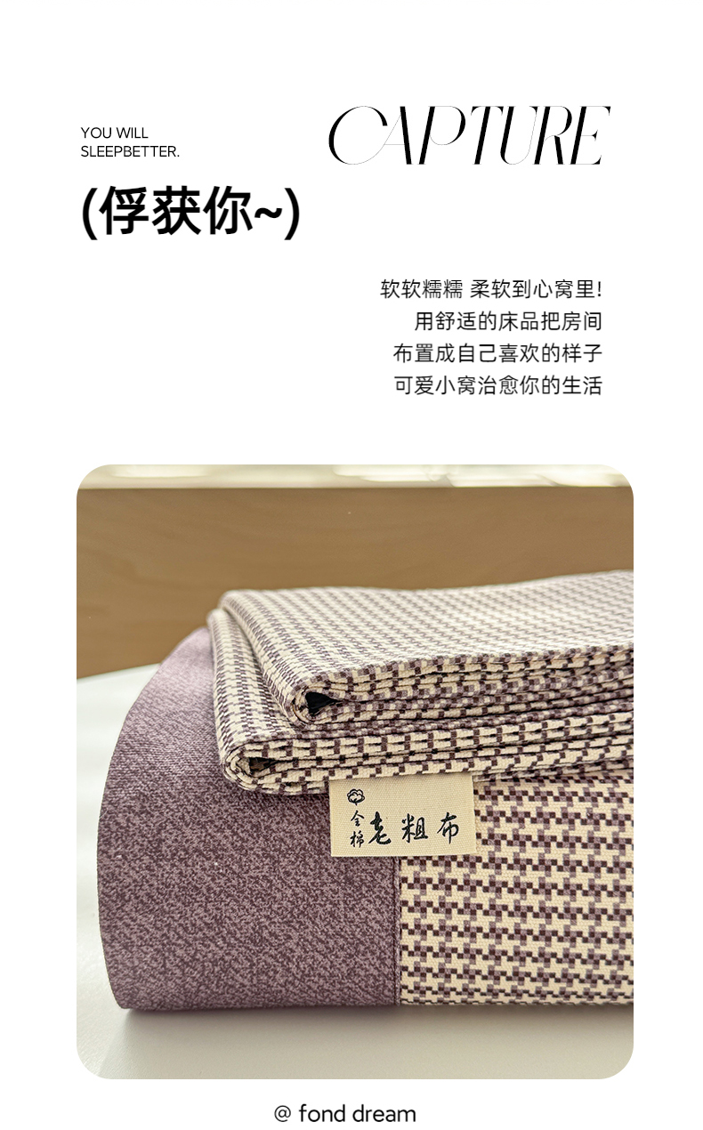 • 91家纺网 家纺一手货源 找家纺 简宜家居 2025新款宽边纯棉全棉老粗布床单 千鸟格-微醺紫