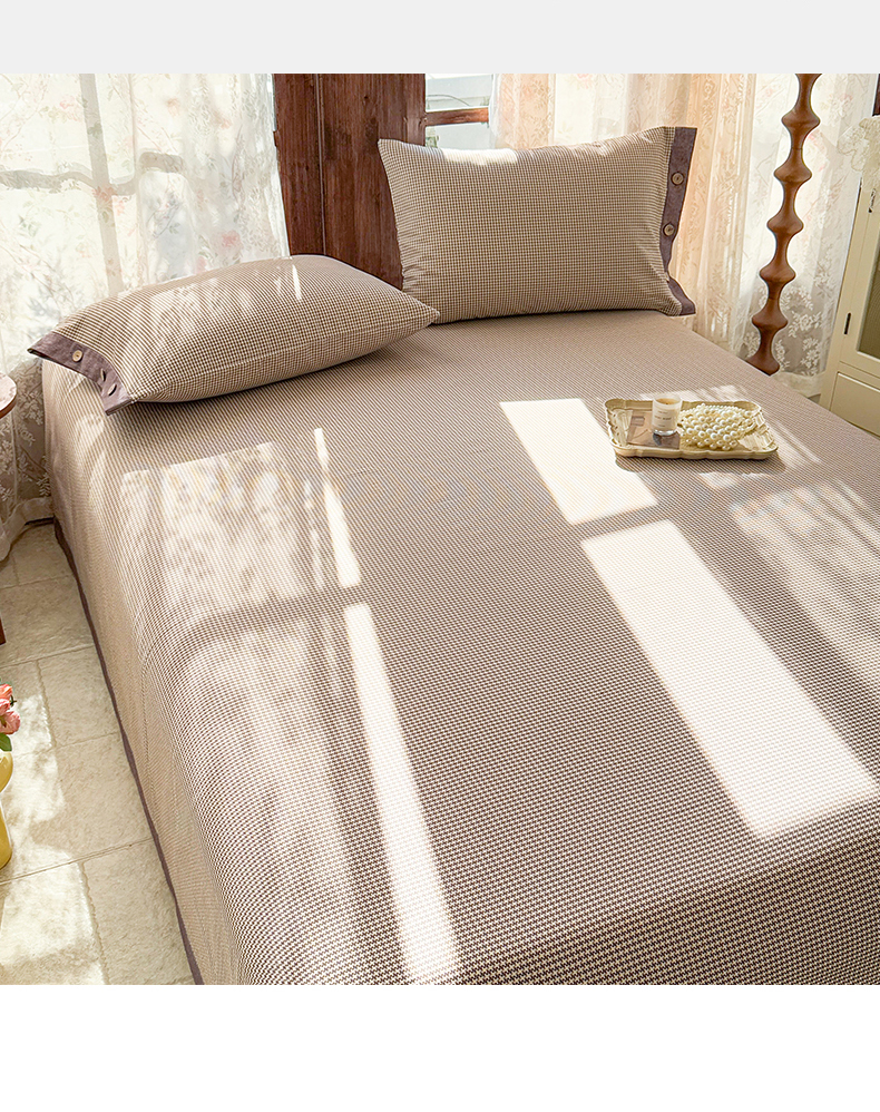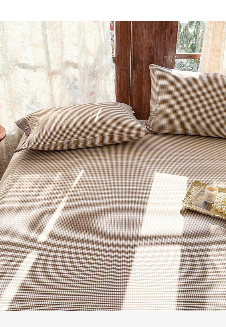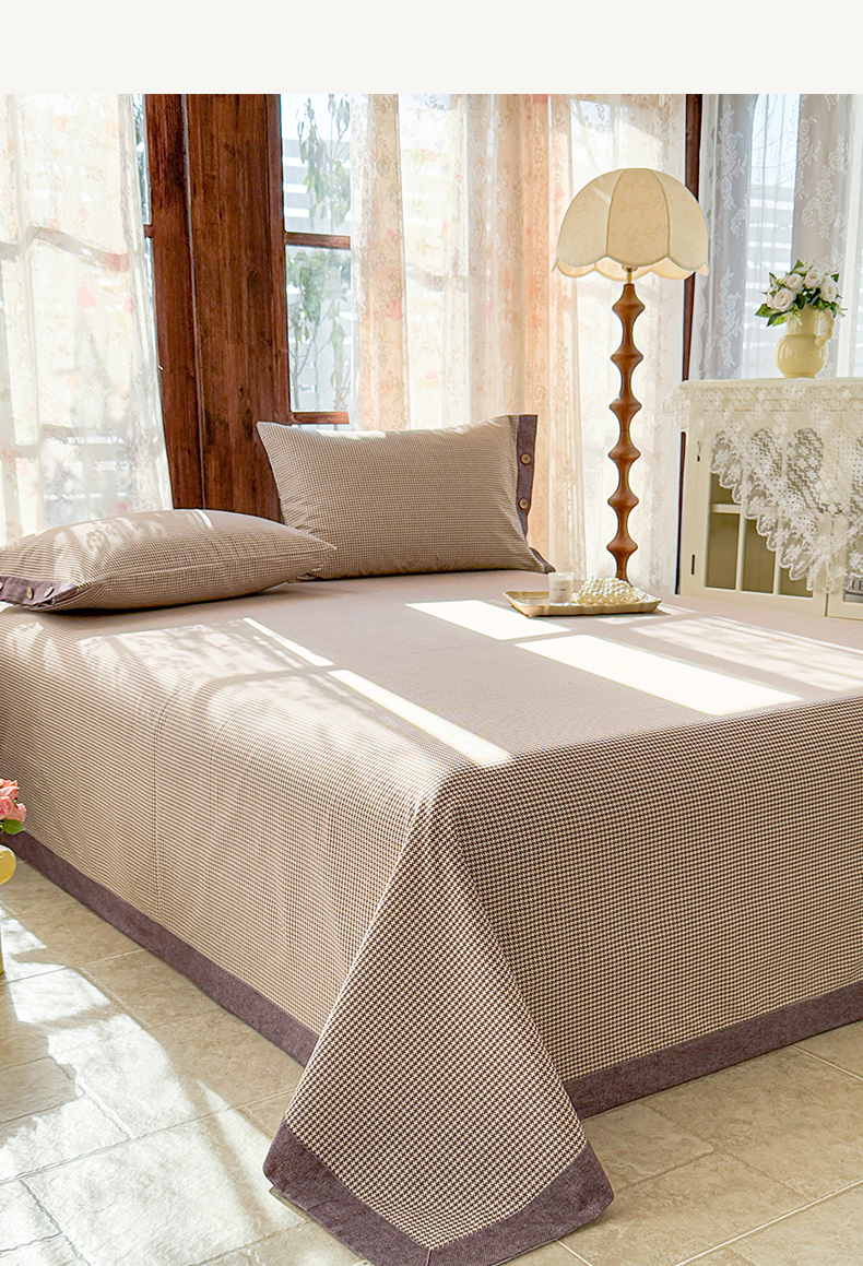 简宜家居 2025新款宽边纯棉全棉老粗布床单 千鸟格-微醺紫