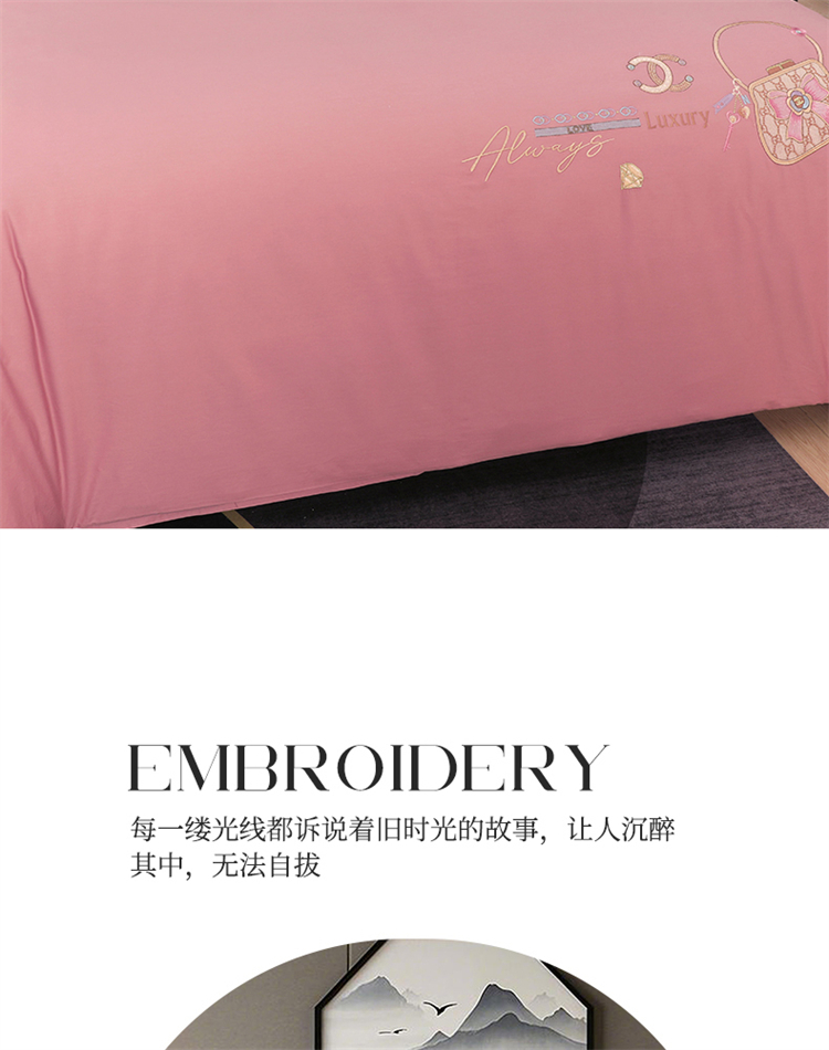 (总)浩情国际婚庆供货中心 2026新品-100支全棉长绒棉磨毛高端刺绣系列四件套,轻曼-豆沙,轻曼-湖兰,轻曼-米驼,轻曼-浅绿,轻曼-浅玉,轻曼-银灰,山水情-豆沙,山水情-粉玉,山水情-湖兰,山水情-米驼,山水情-浅灰,山水情-水兰
