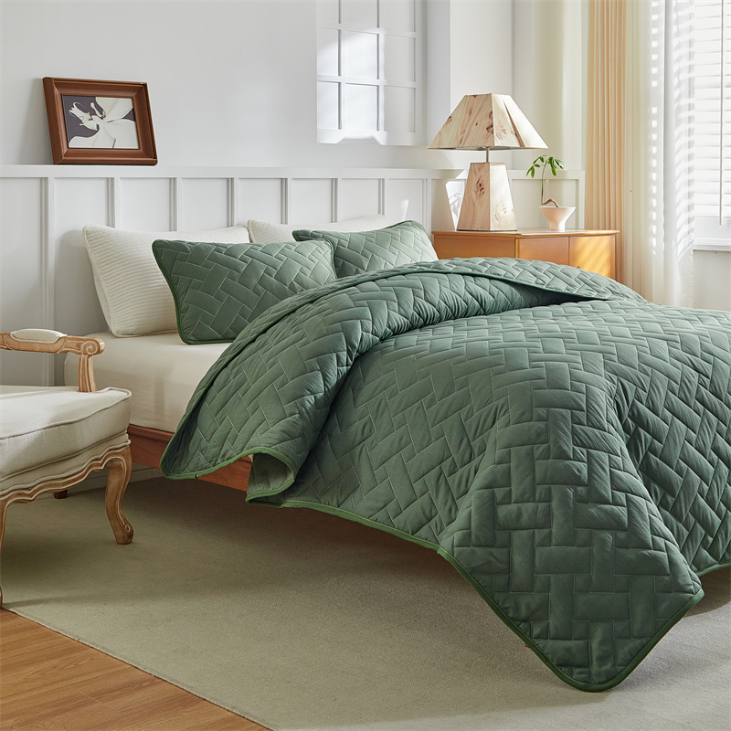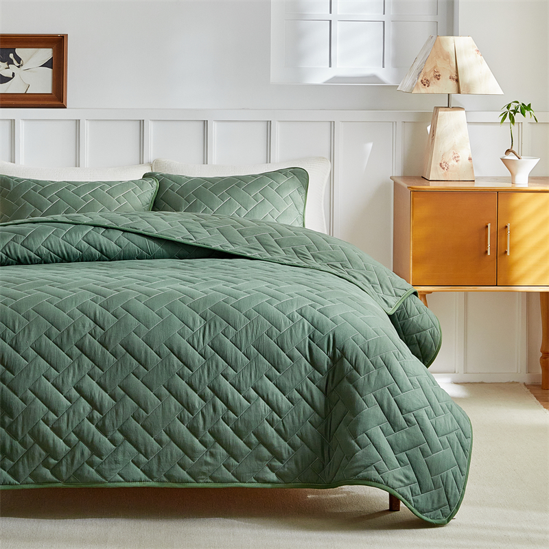 (总)温宁2025新款跨境外贸专供斜方格床盖,绿色,米色,银灰