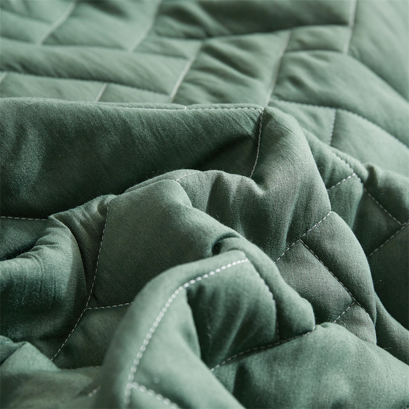 (总)温宁家纺 2025新款跨境双面化纤水洗棉小方块夹棉四季床盖(国外也当做夏被),绿色,米色,银灰