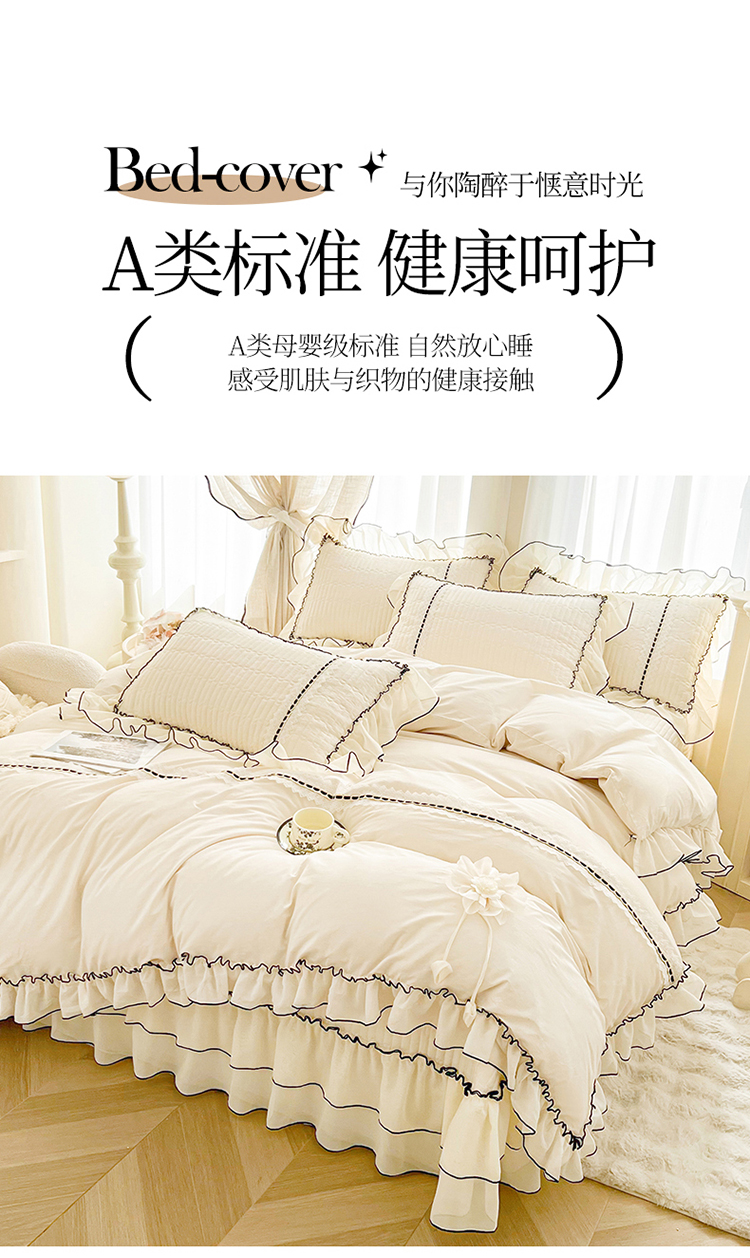 (总)虹星家纺 2024新款A类水洗棉四季款床裙系列套件-四件套,湖水绿,抹茶绿,时尚灰,天空蓝,香妃玉,香蕉黄,香芋紫,樱花粉,云朵白