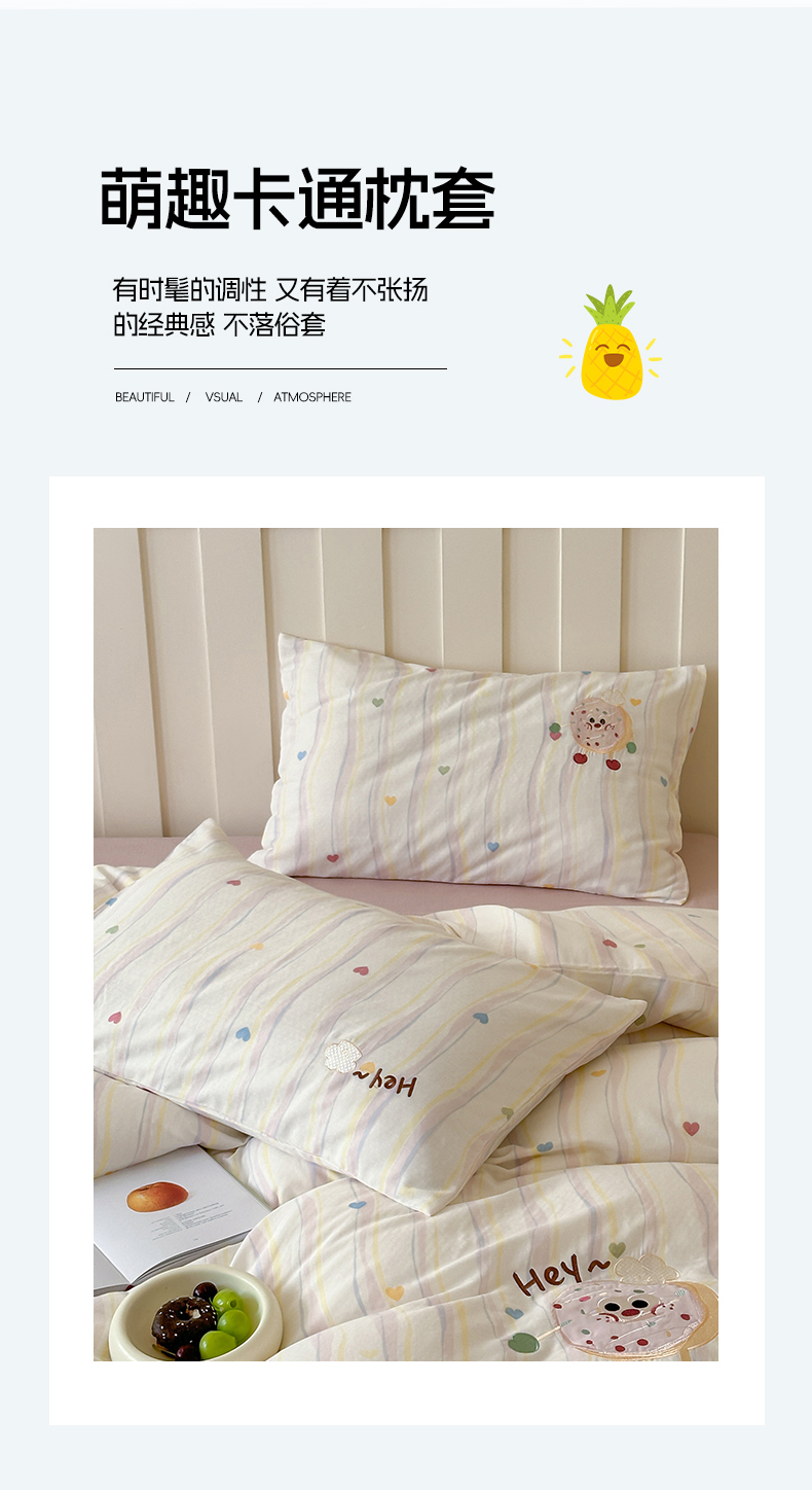 (总)圆岛家纺 2023新款可单卖单品枕套图1,Luv紫,葵绿条,奶牛斑点,薇粉细条,心心,星岛