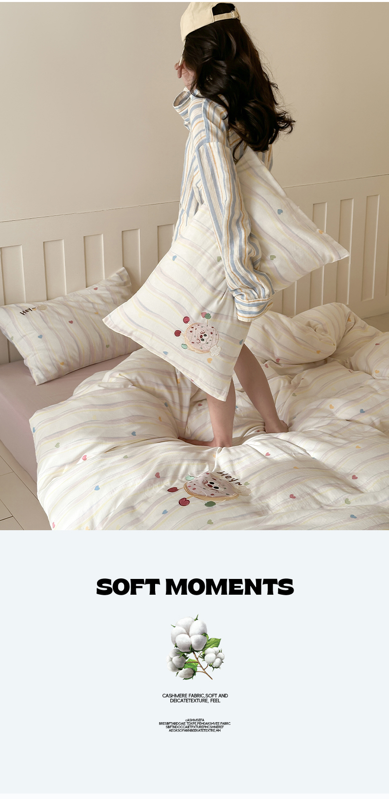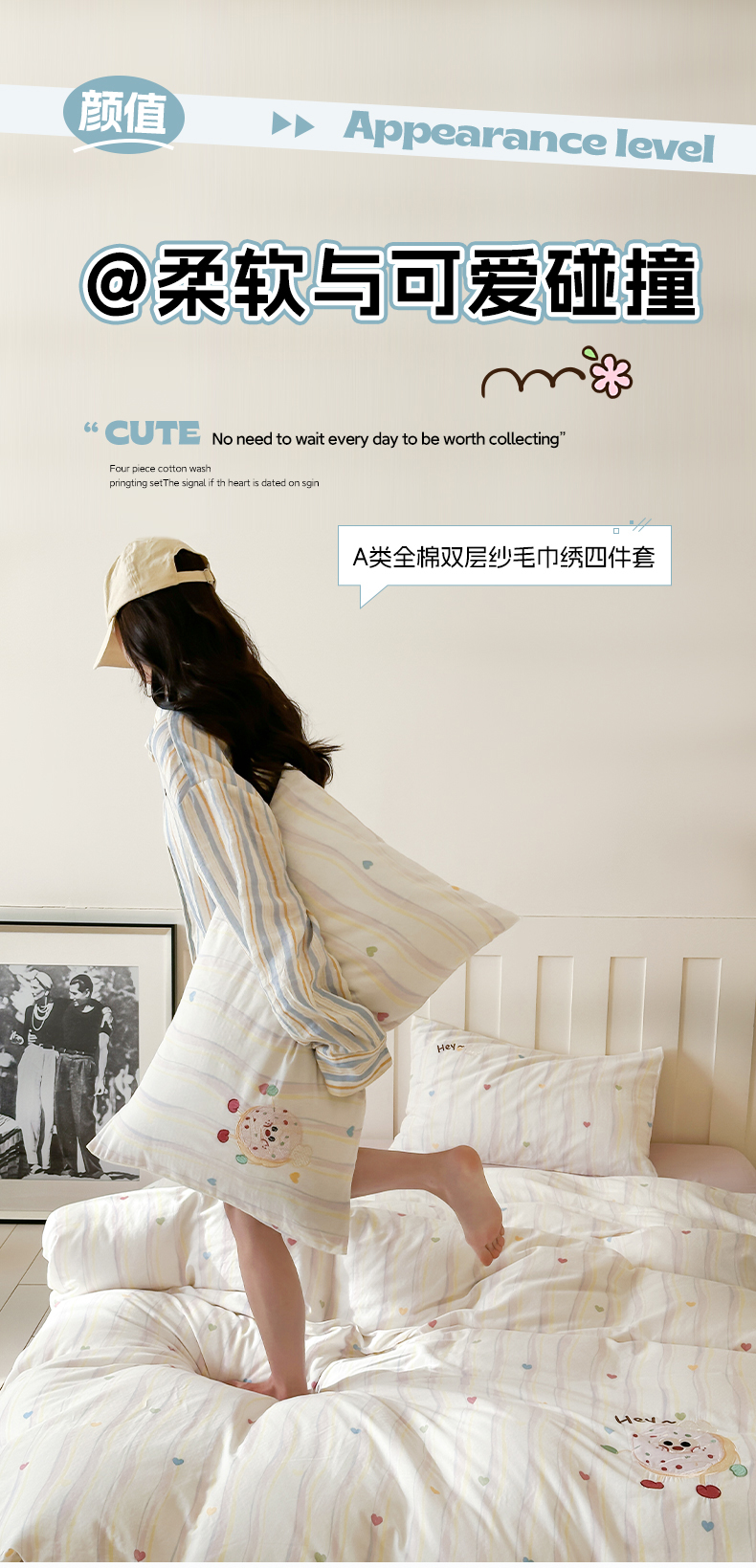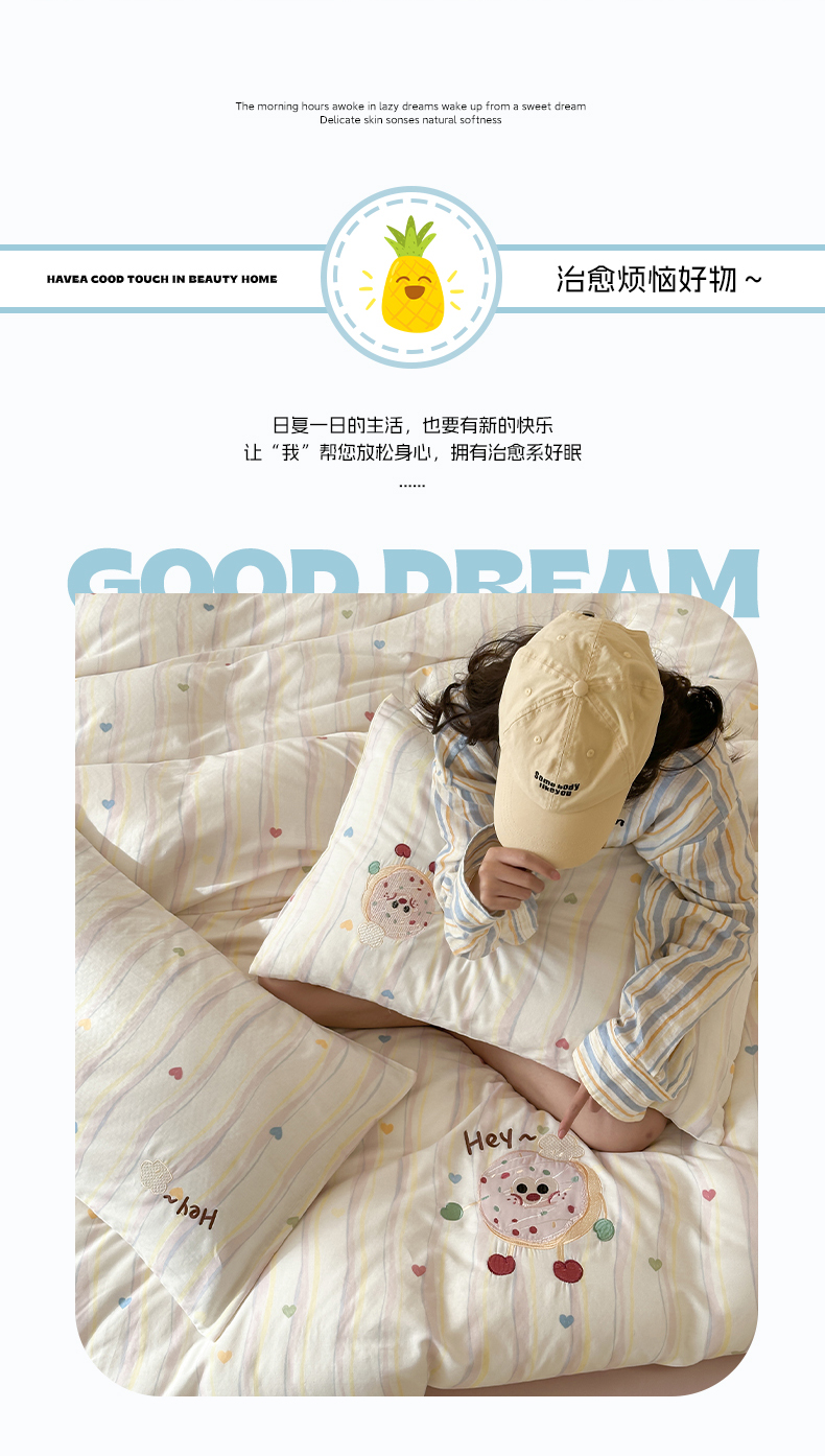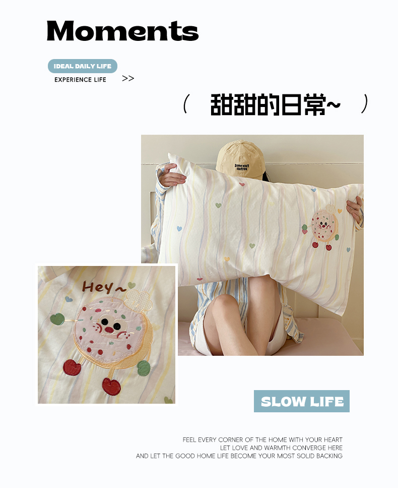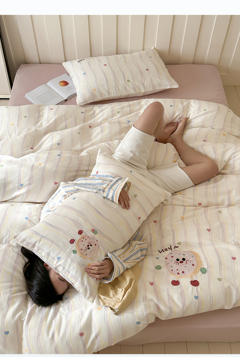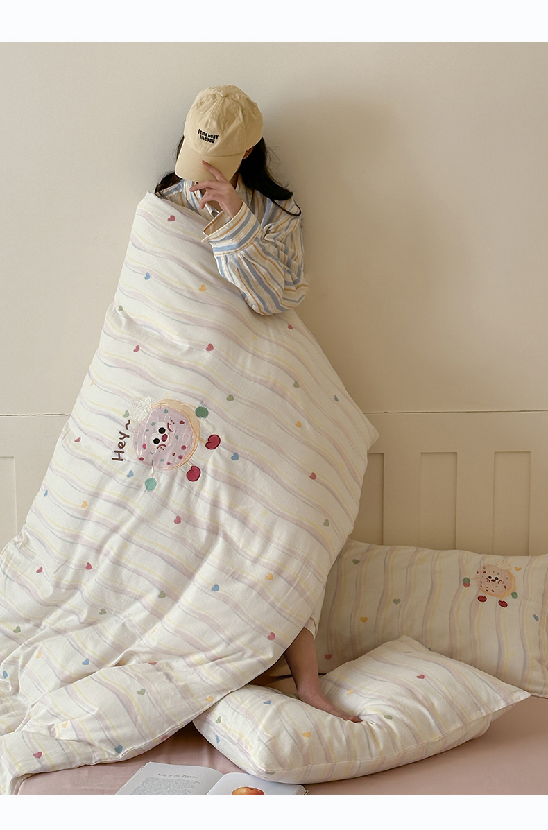 商品名称:圆岛家纺 2025新款全棉双层纱贴布绣四件套 甜甜圈