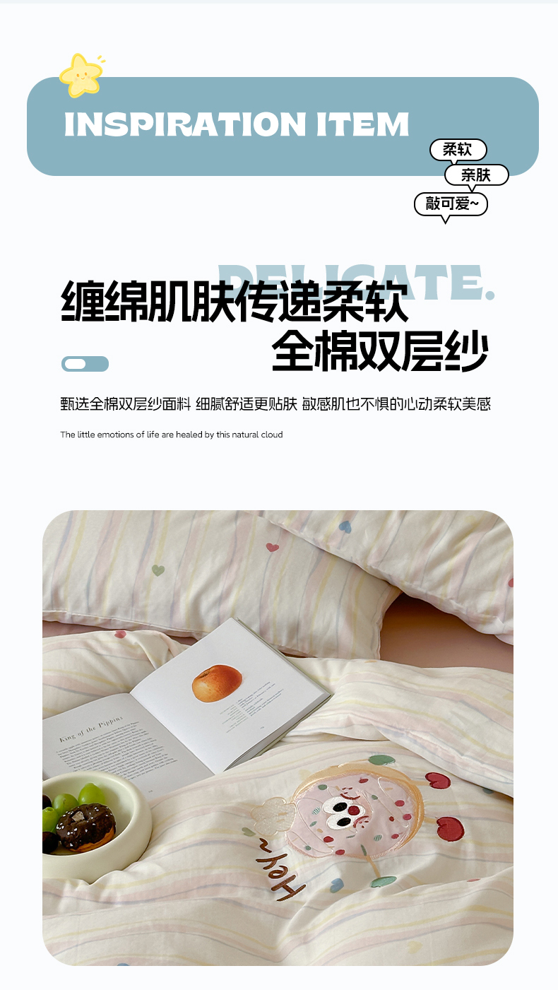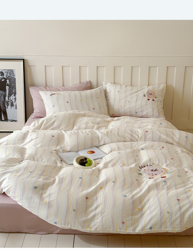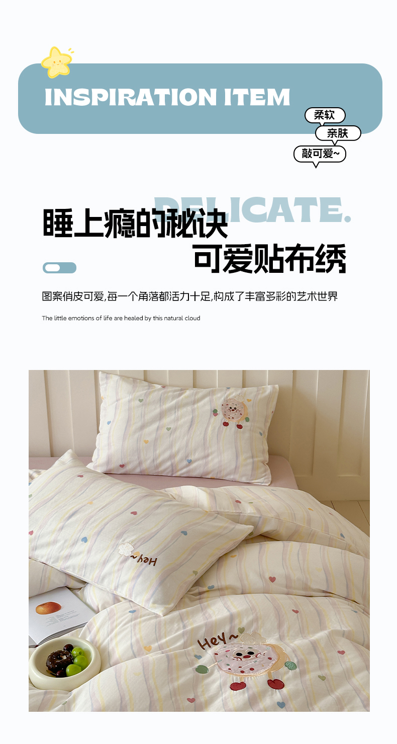 圆岛家纺 2025新款全棉双层纱贴布绣四件套 甜甜圈