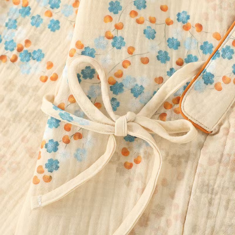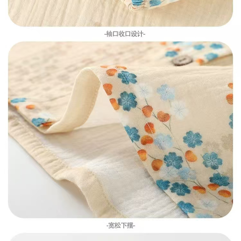 商品名称:洛兰沙家居馆【只代发】【只代发】2025新款简约印花睡衣女春夏季宽松休闲家居服长袖开衫套装印花棉纱两件套 花束圆领