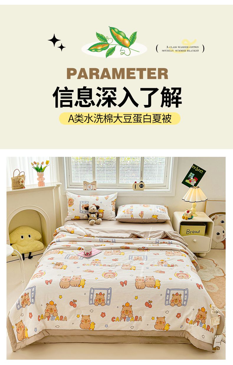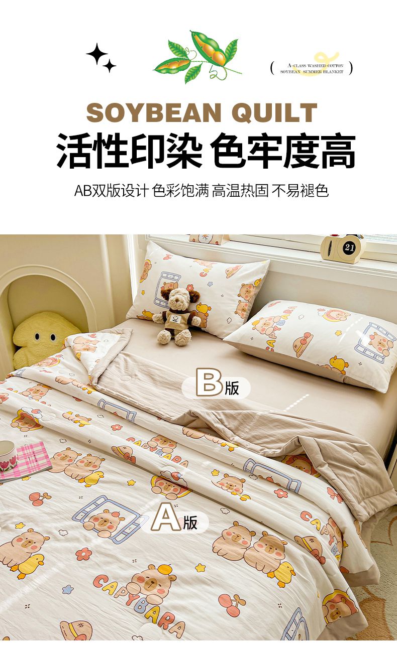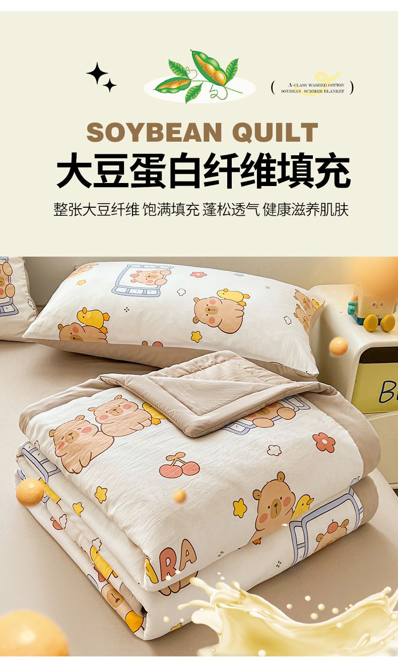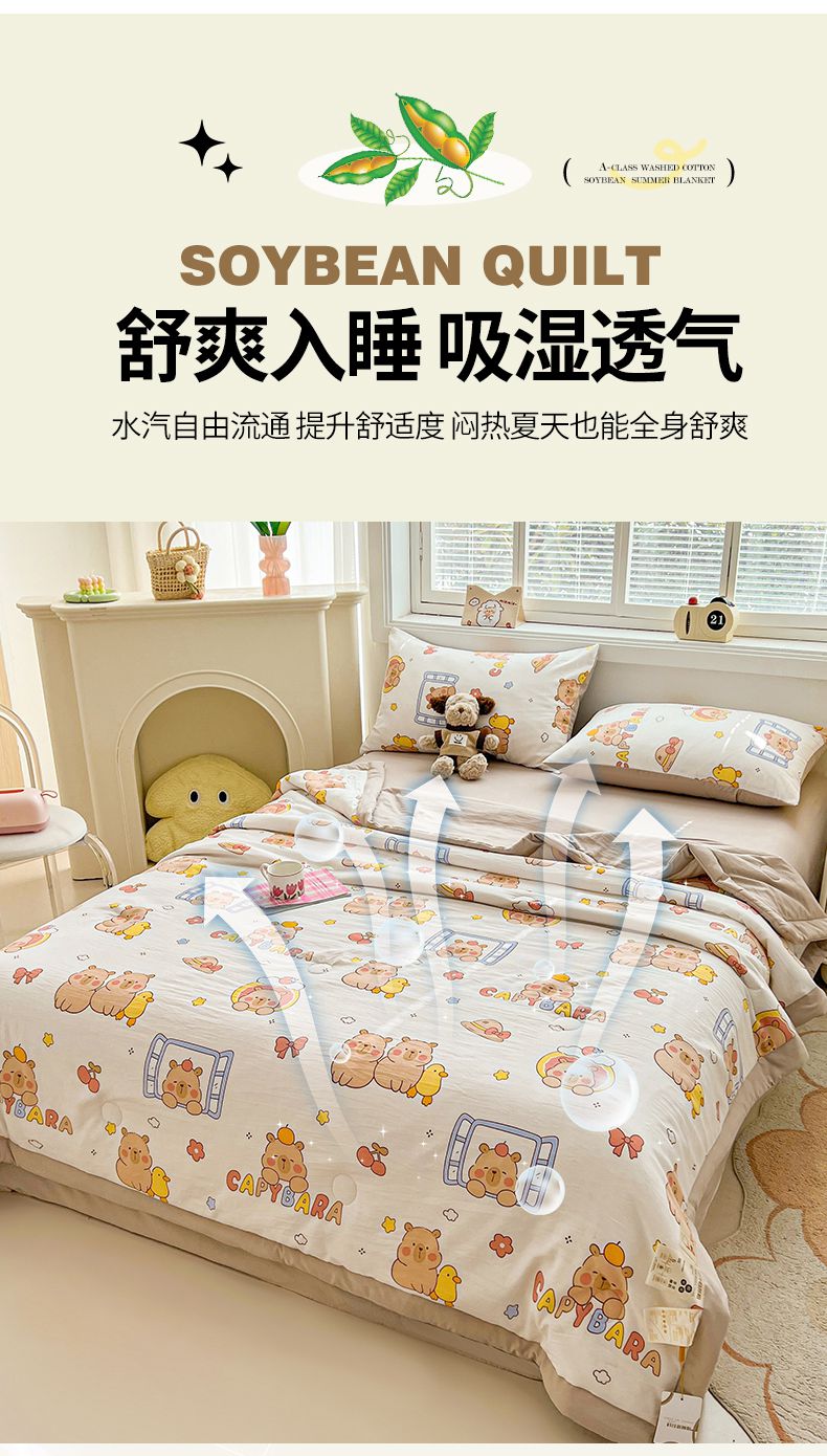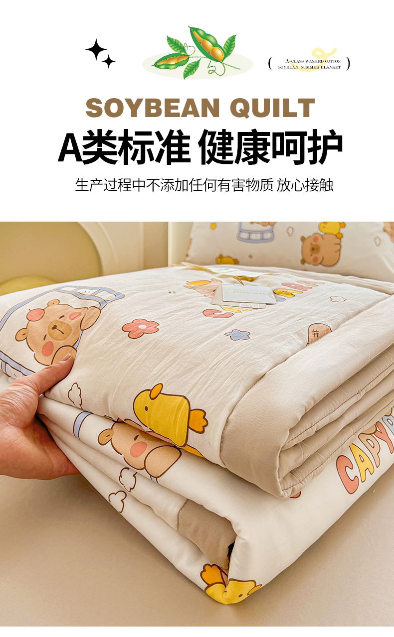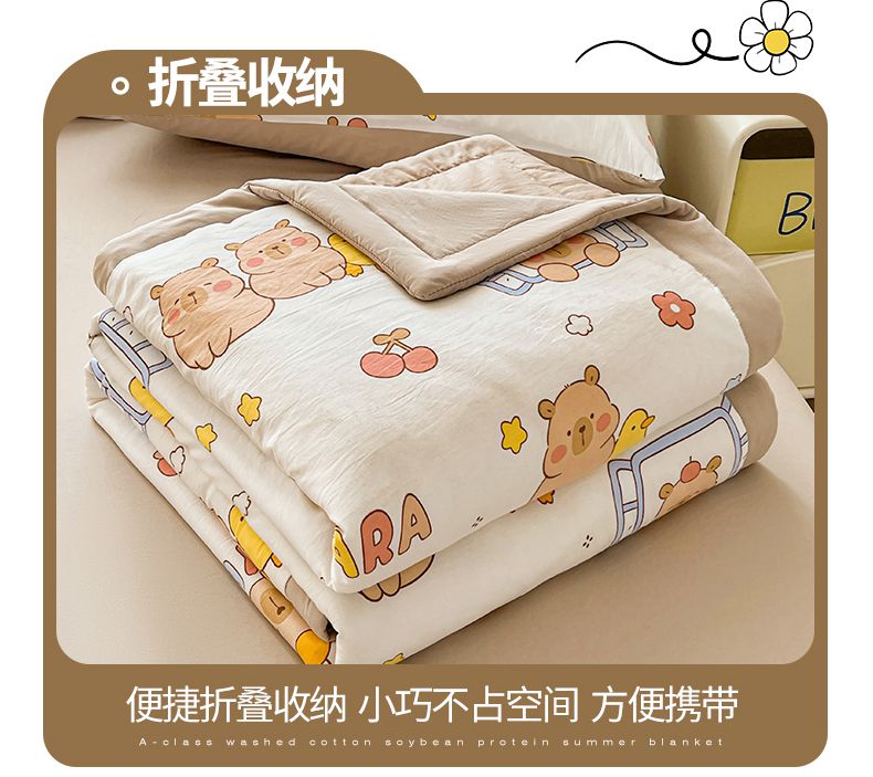商品名称:秋泽家纺 2025春夏新款水洗棉双层纱大豆纤维夏被夏凉被空调被 可爱卡皮巴拉