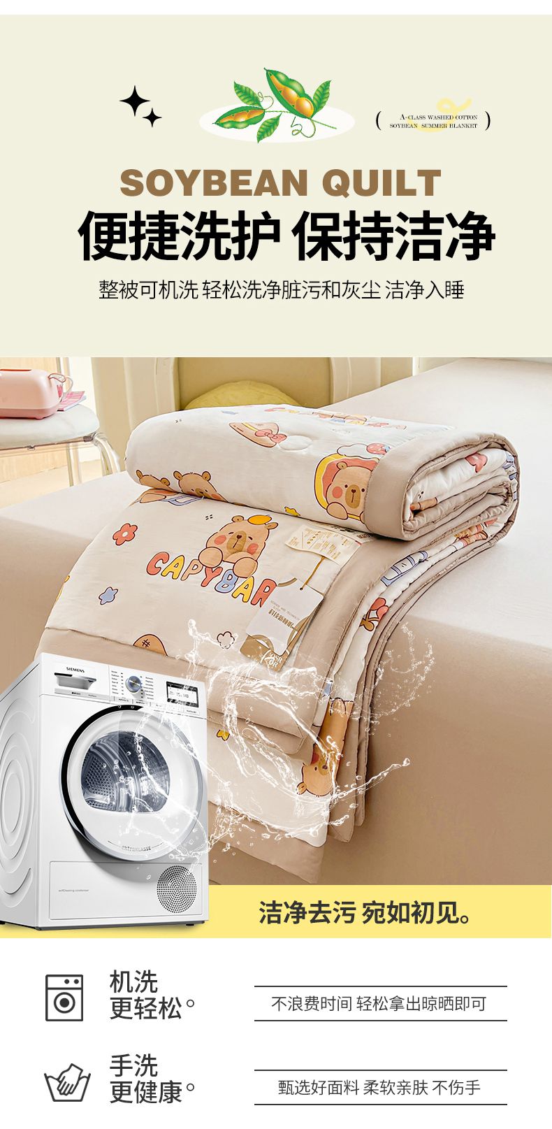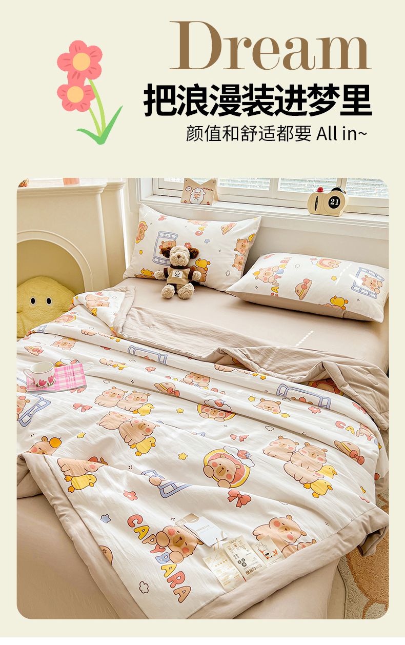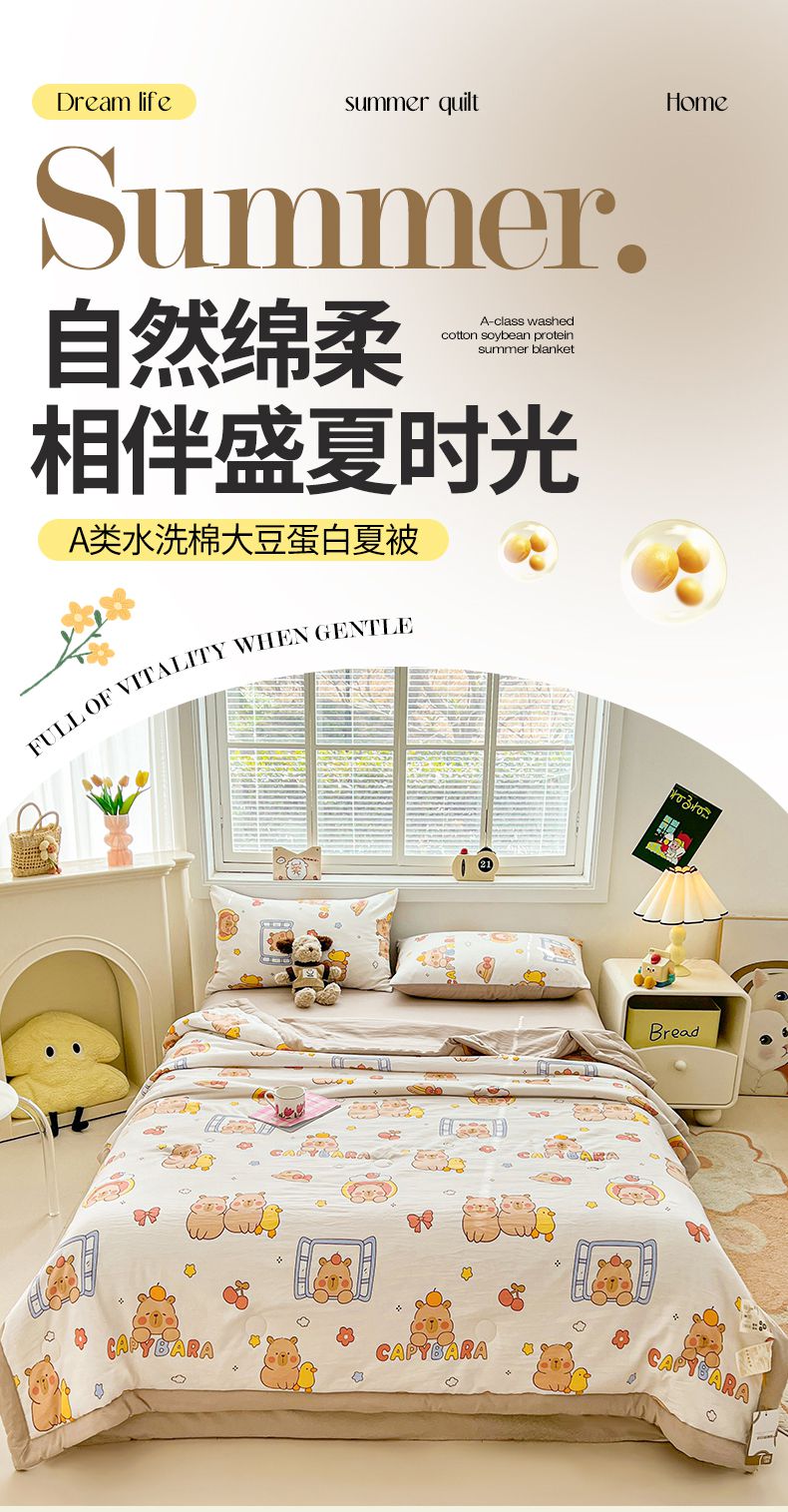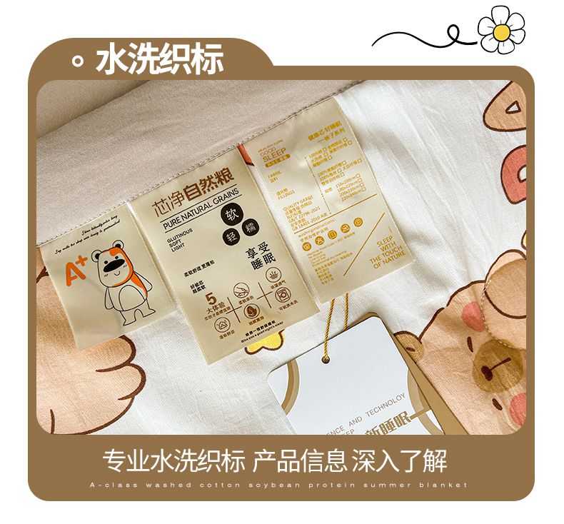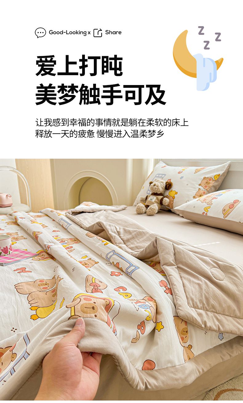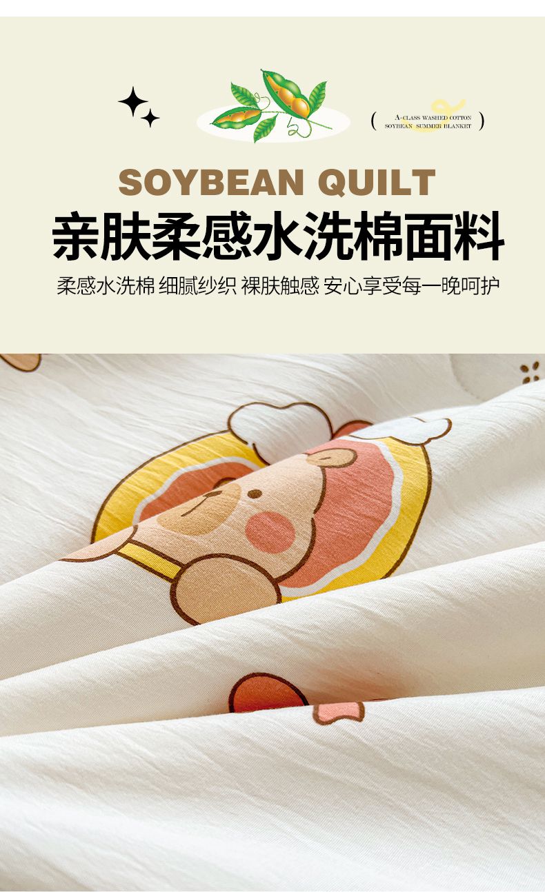 商品名称:秋泽家纺 2025春夏新款水洗棉双层纱大豆纤维夏被夏凉被空调被 可爱卡皮巴拉