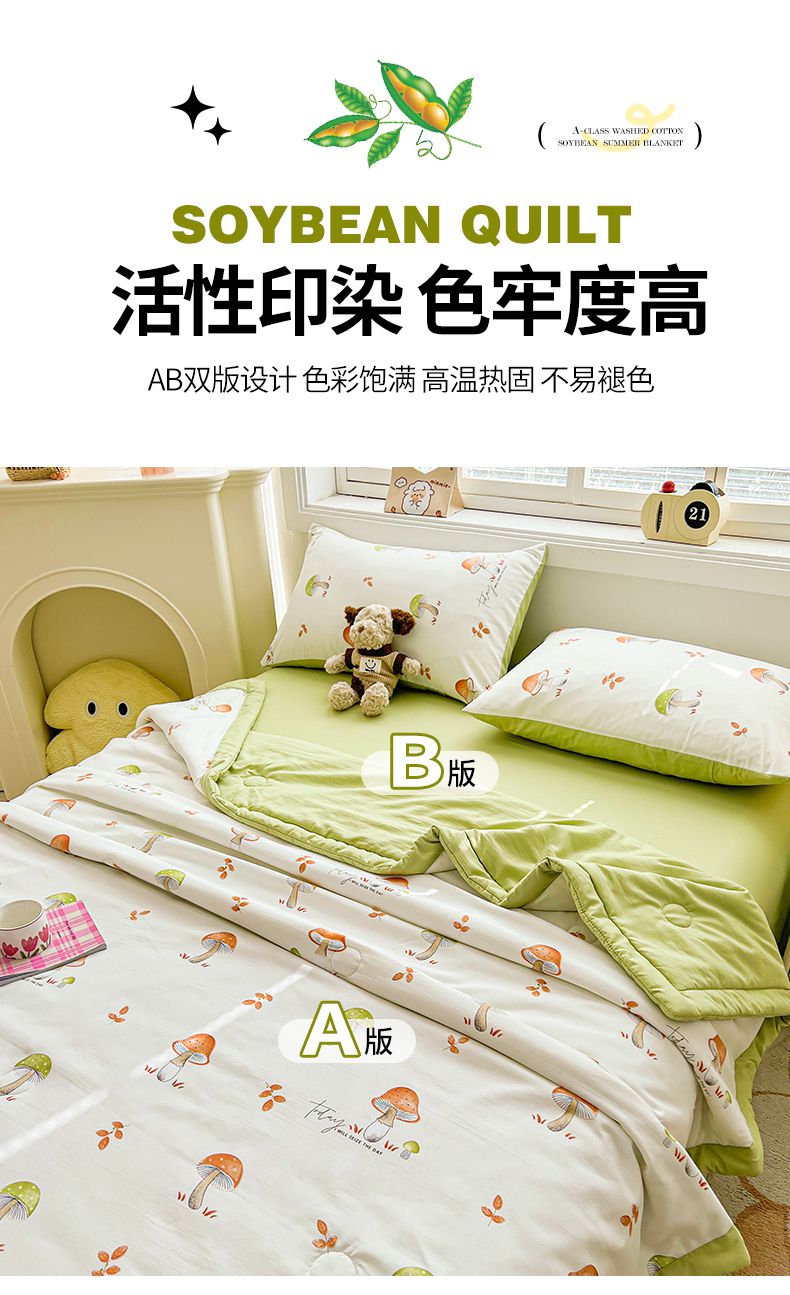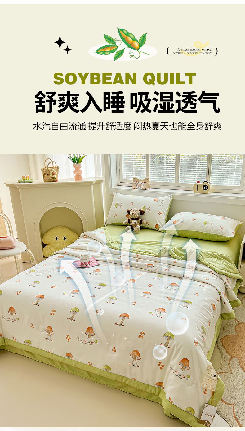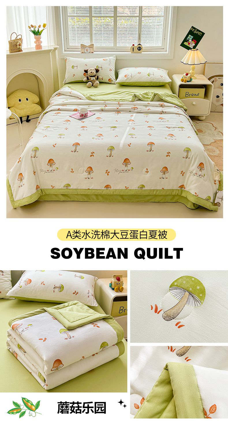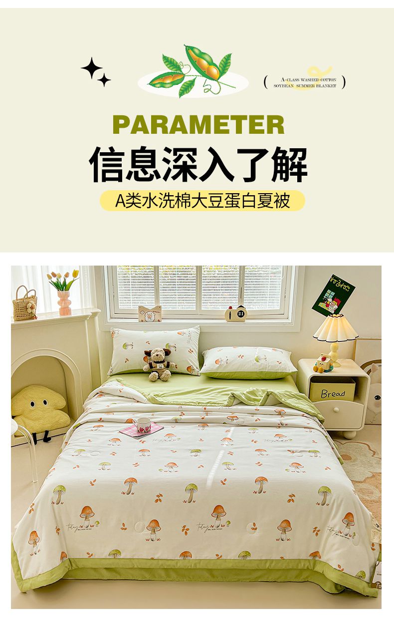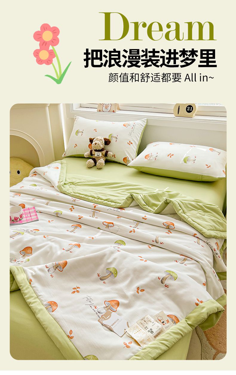 商品名称:秋泽家纺 2025春夏新款水洗棉双层纱大豆纤维夏被夏凉被空调被 蘑菇乐园