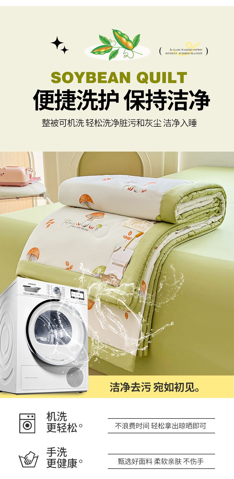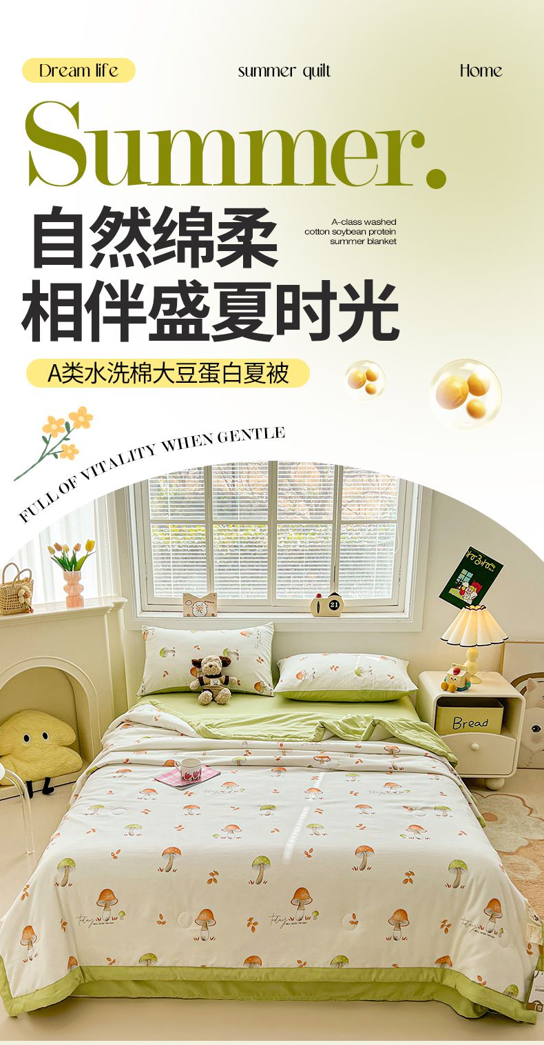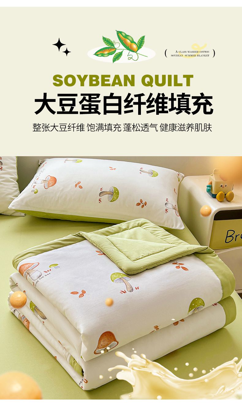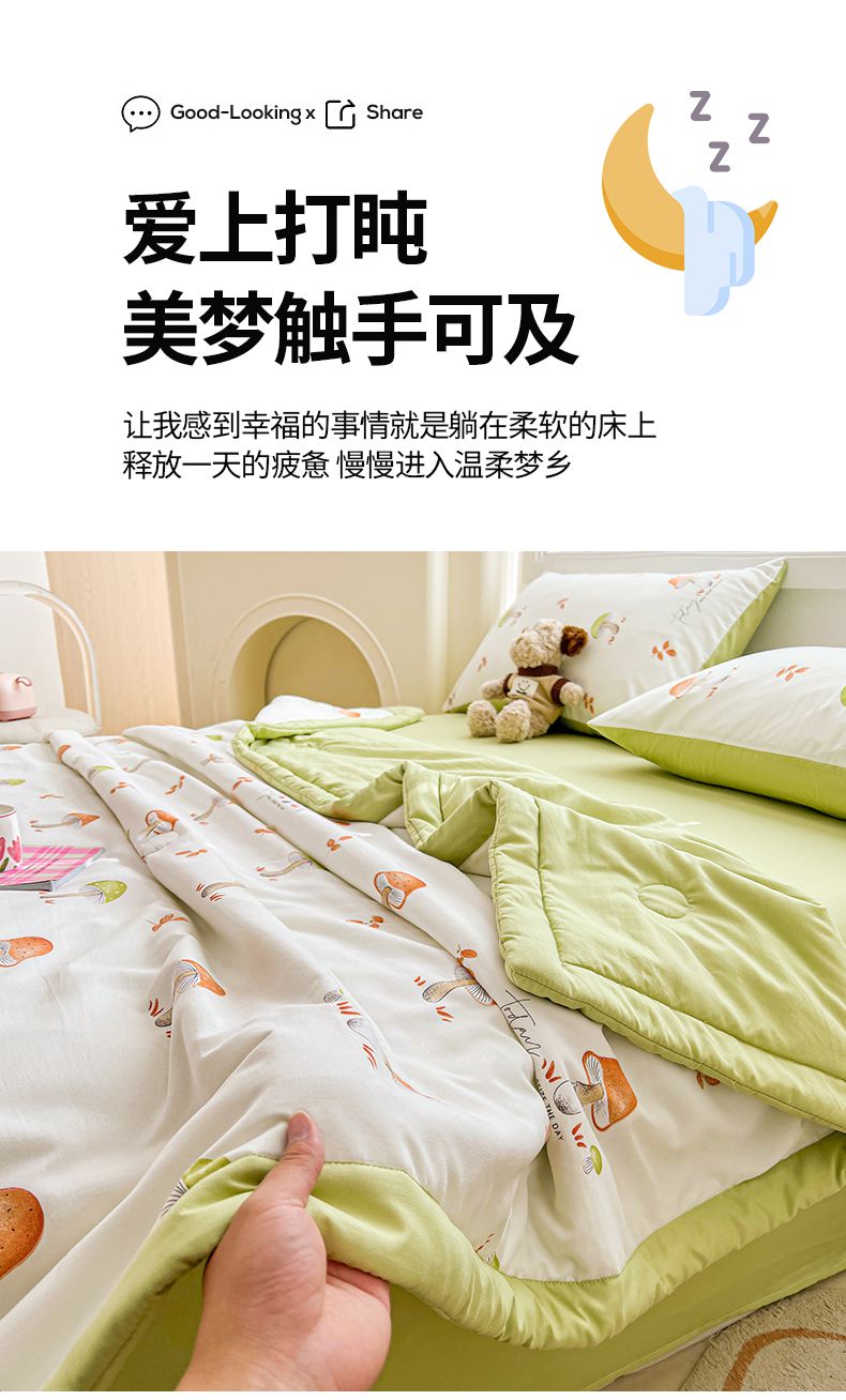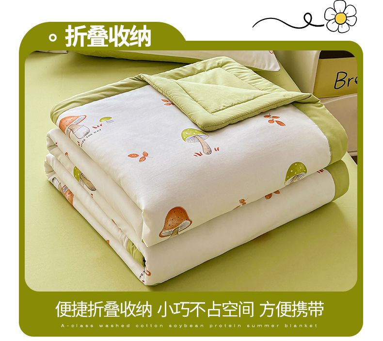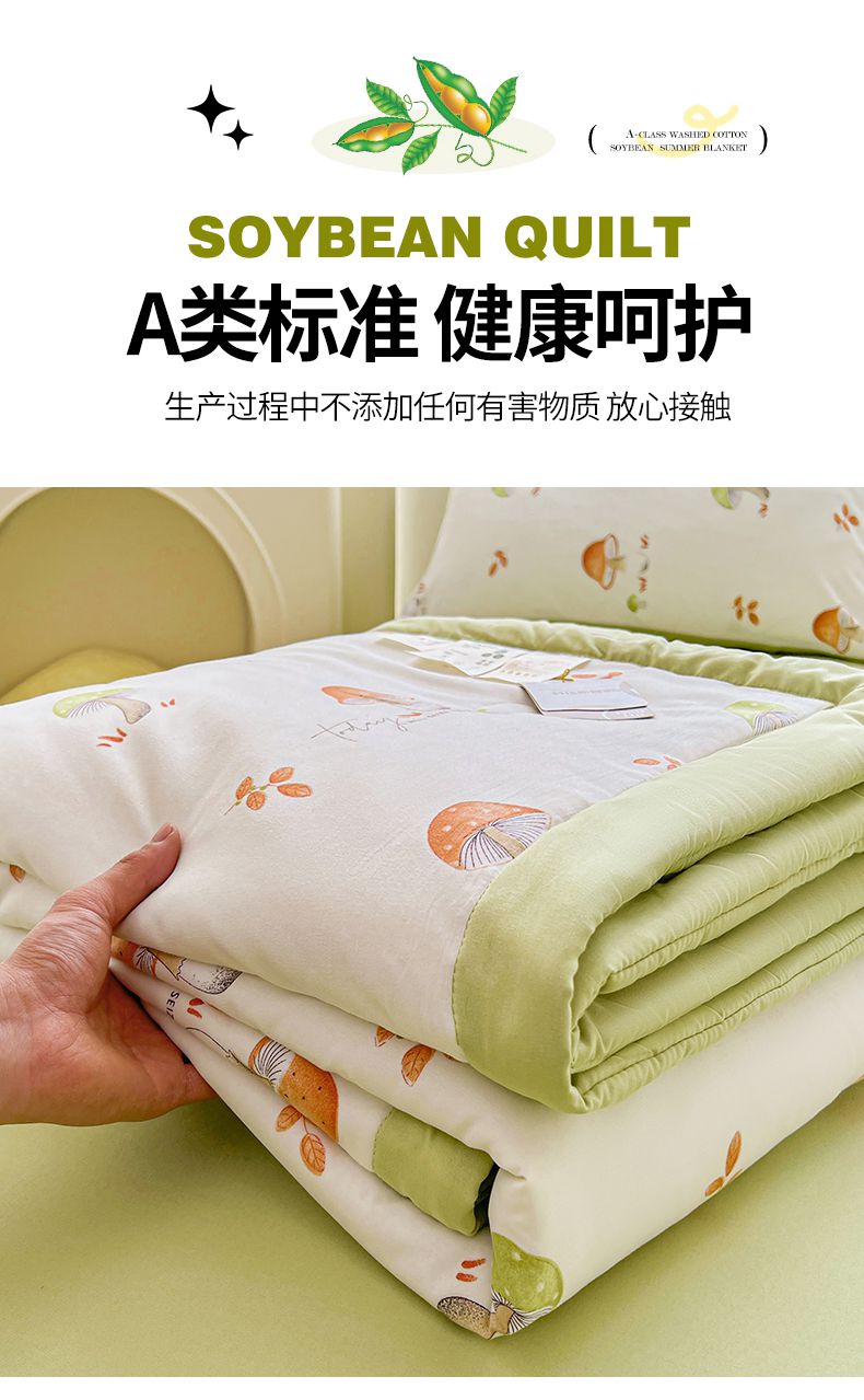 商品名称:秋泽家纺 2025春夏新款水洗棉双层纱大豆纤维夏被夏凉被空调被 蘑菇乐园