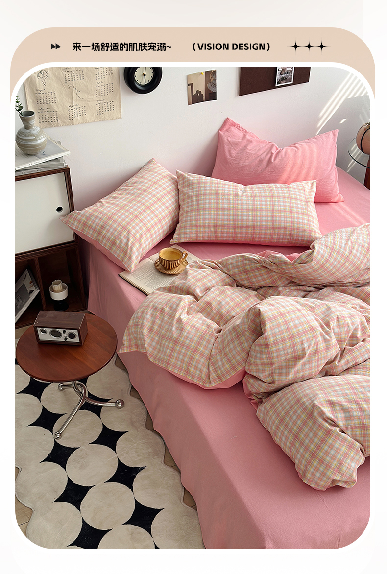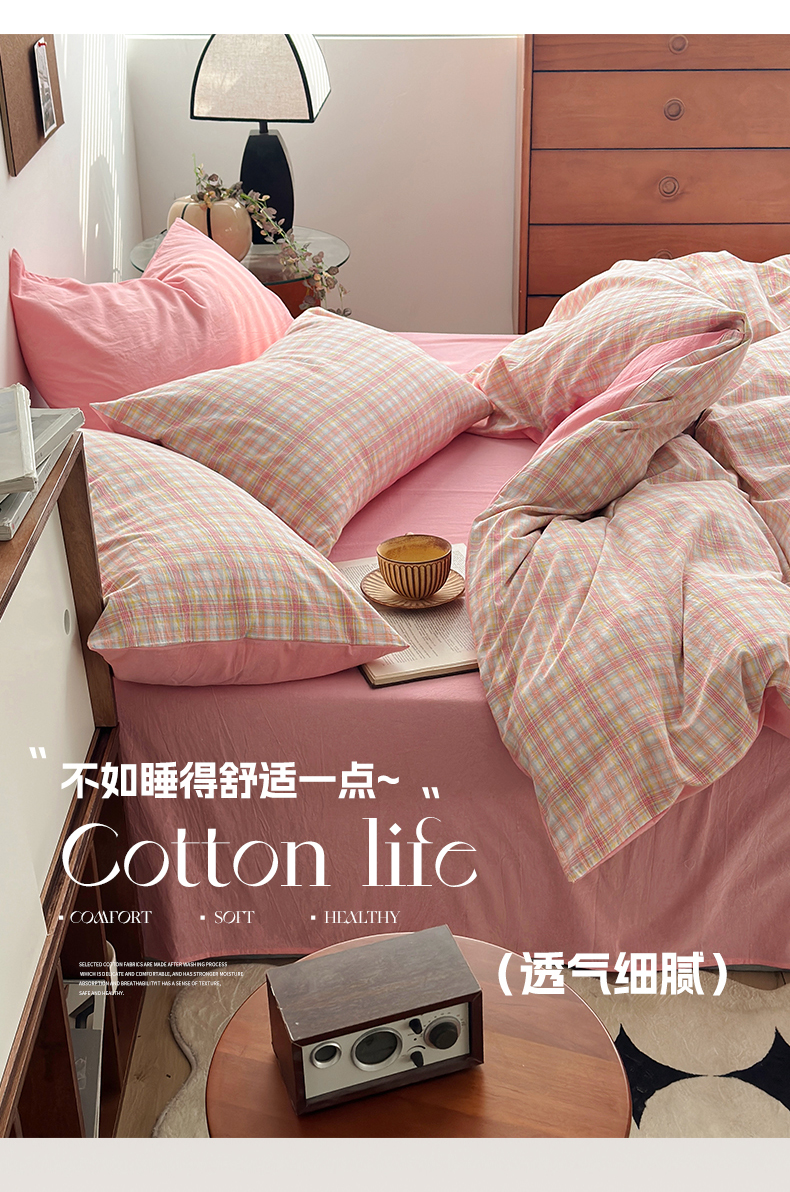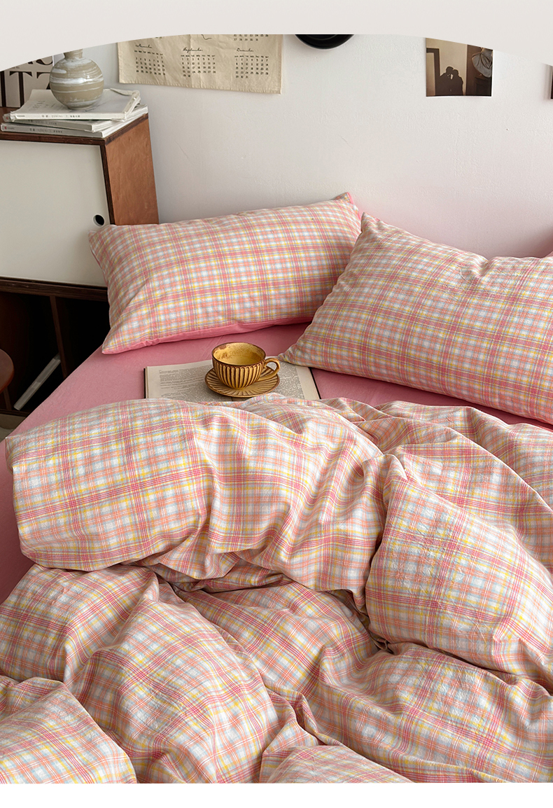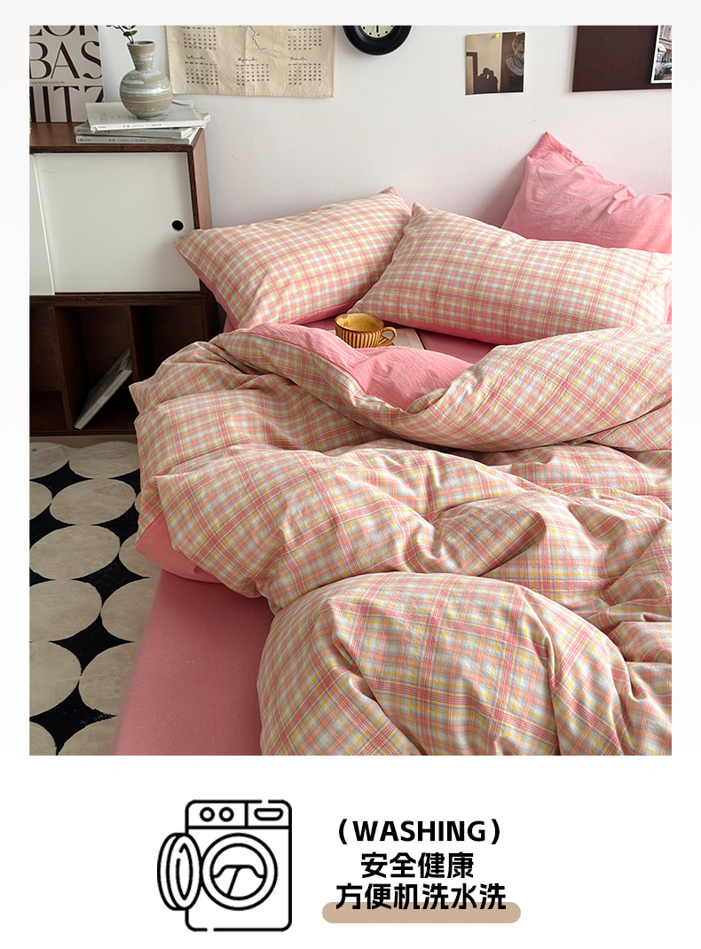 当前位置: 91家纺网 > 商品网购 > 床品套件 > 四件套 > 色织四件套 > 水洗的故事2025新款A类AB版全棉色织水洗棉四件套 桃夭