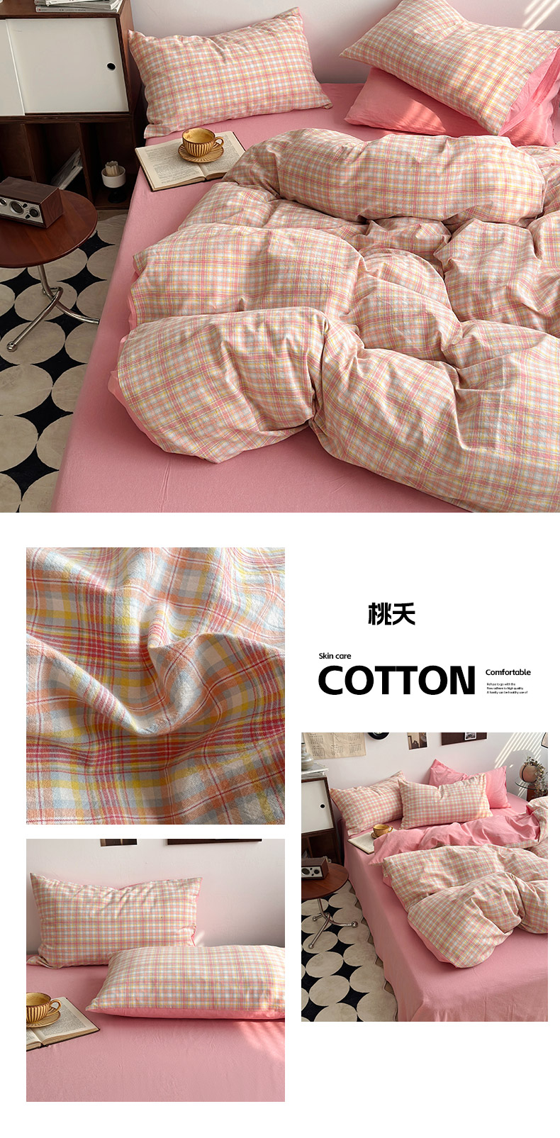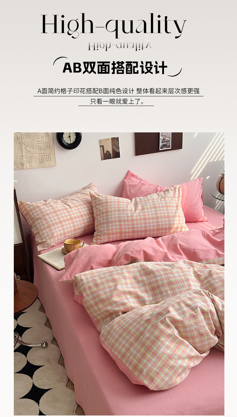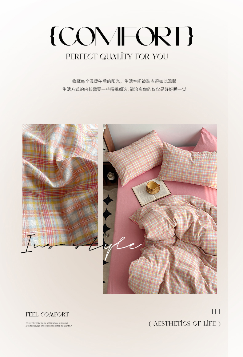当前位置: 91家纺网 > 商品网购 > 床品套件 > 四件套 > 色织四件套 > 水洗的故事2025新款A类AB版全棉色织水洗棉四件套 桃夭