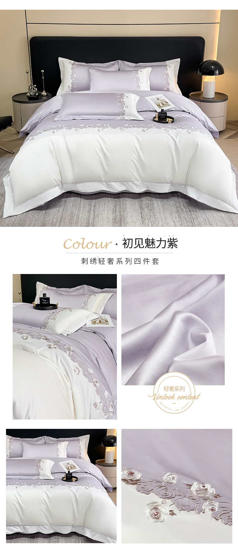 KA家纺 2025春夏新款全棉绣花四件套 初见系列 初见魅力紫