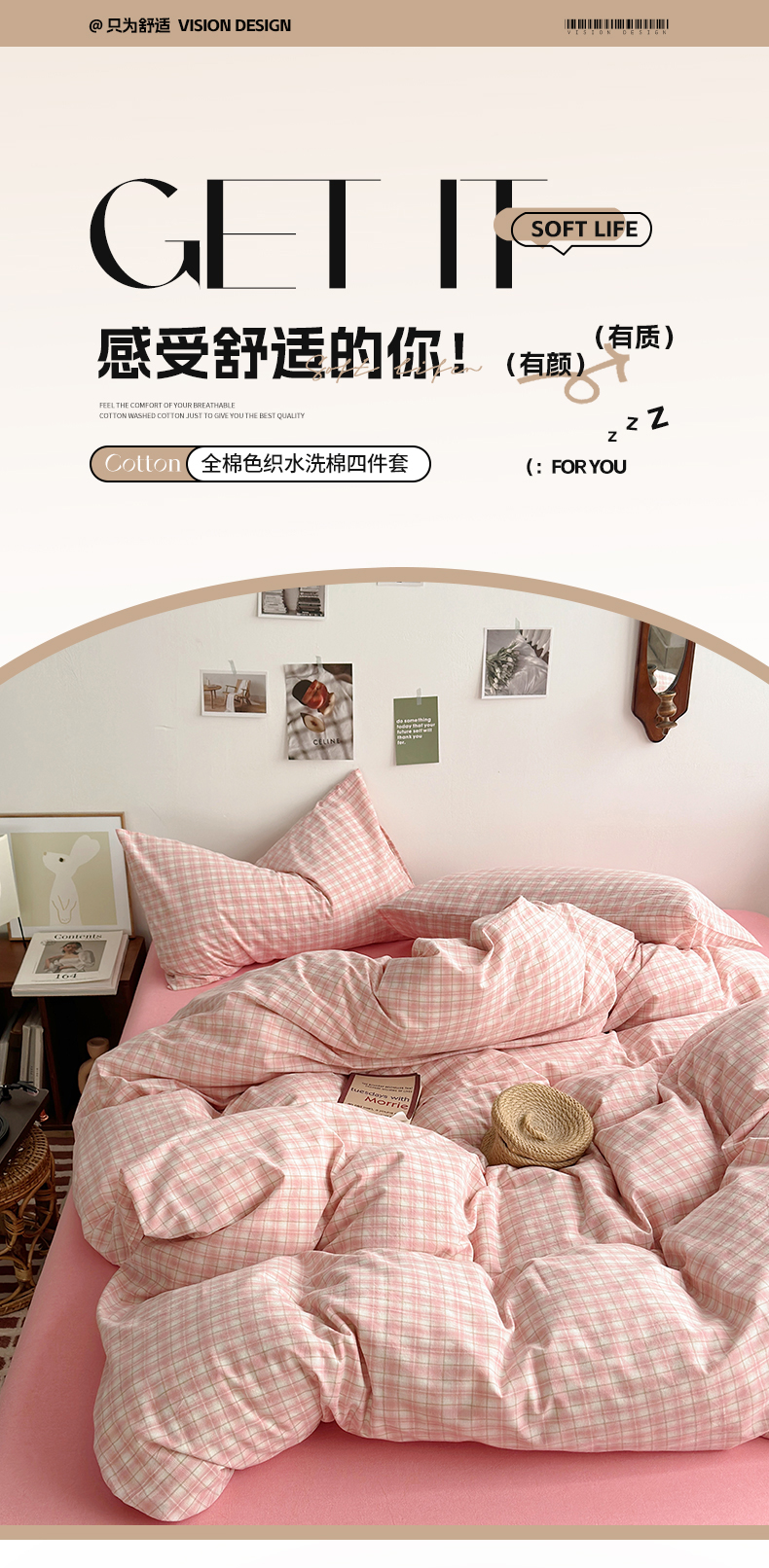 当前位置: 91家纺网 > 商品网购 > 床品套件 > 四件套 > 水洗棉四件套 > 水洗的故事 2025新款无印良品水洗棉四件套 小小格粉