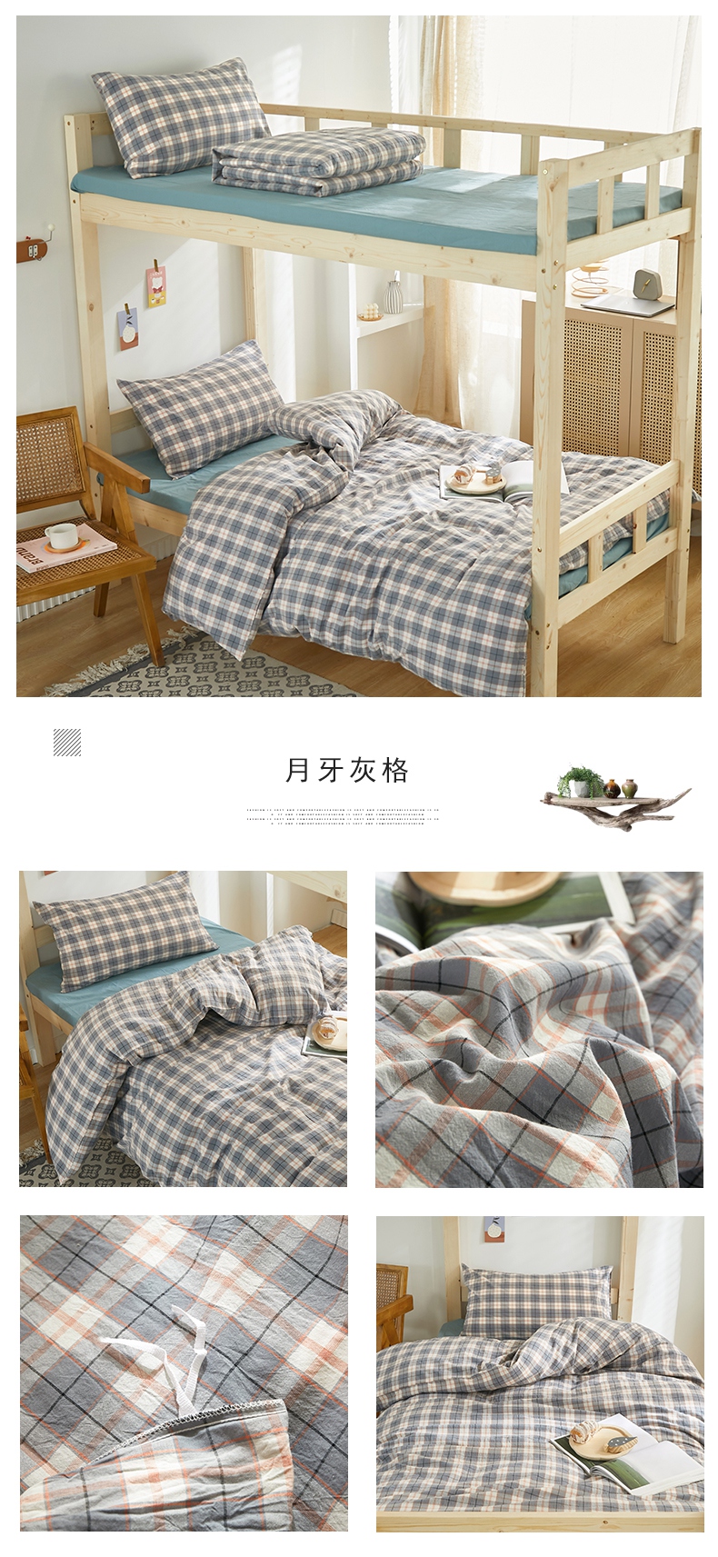 商品名称:水洗的故事 2025新款开学季色织水洗棉学生宿舍三件套 欧比亚粉