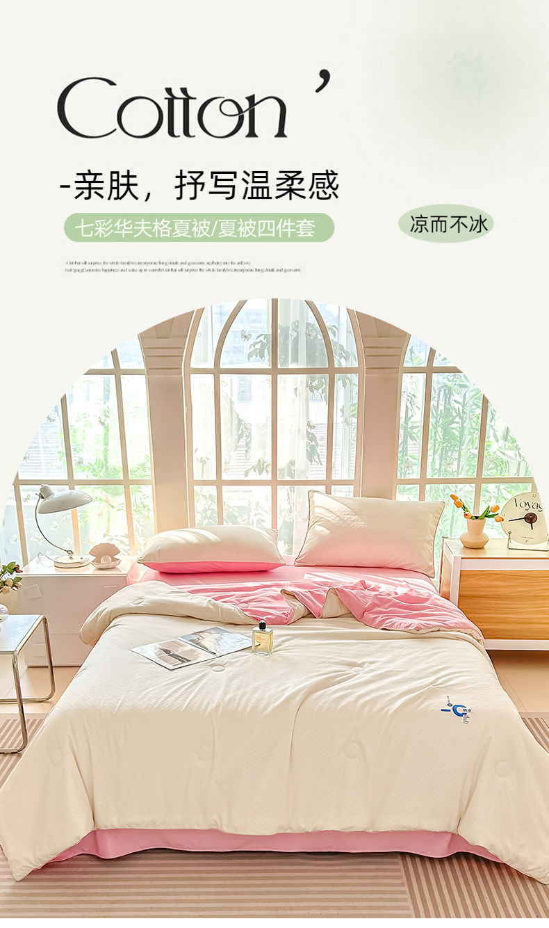 • 91家纺网 家纺一手货源 找家纺 芙绣 芙绣 2025新款七彩华夫格提花夏被四件套夏凉被空调被 奶昔+粉