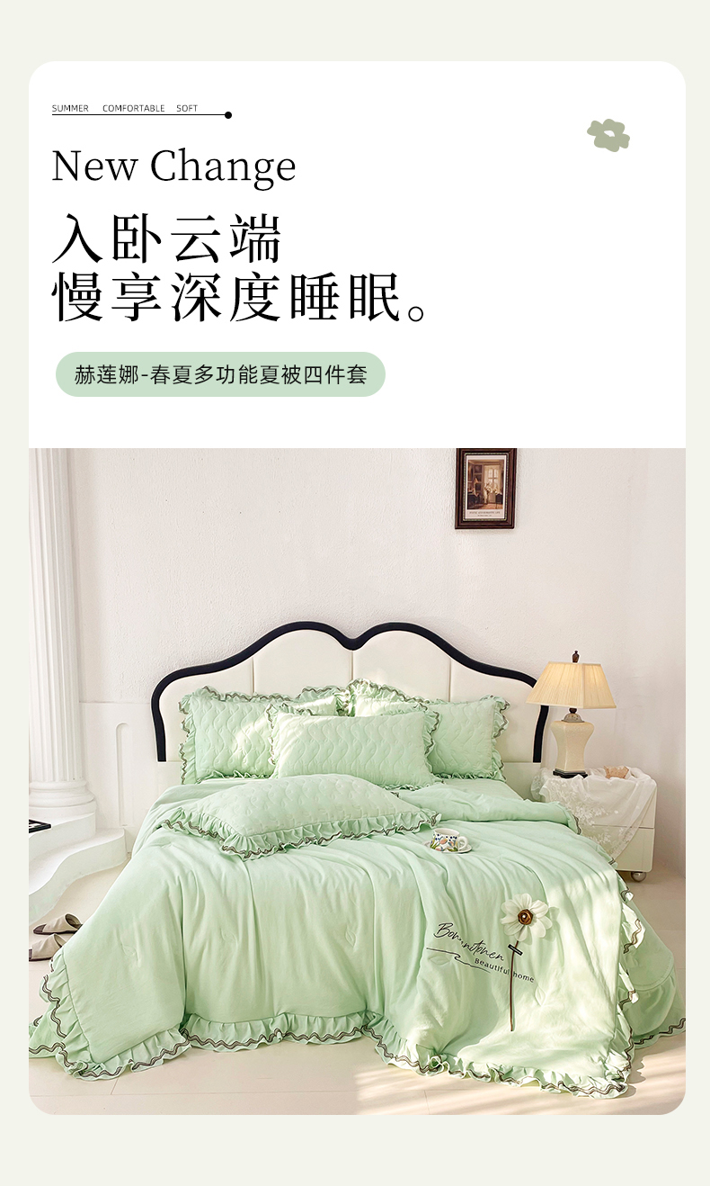 金绣美居 2025春夏韩版被套床盖款多功能夏被四件套-赫莲娜(控价不低于149) 新绿