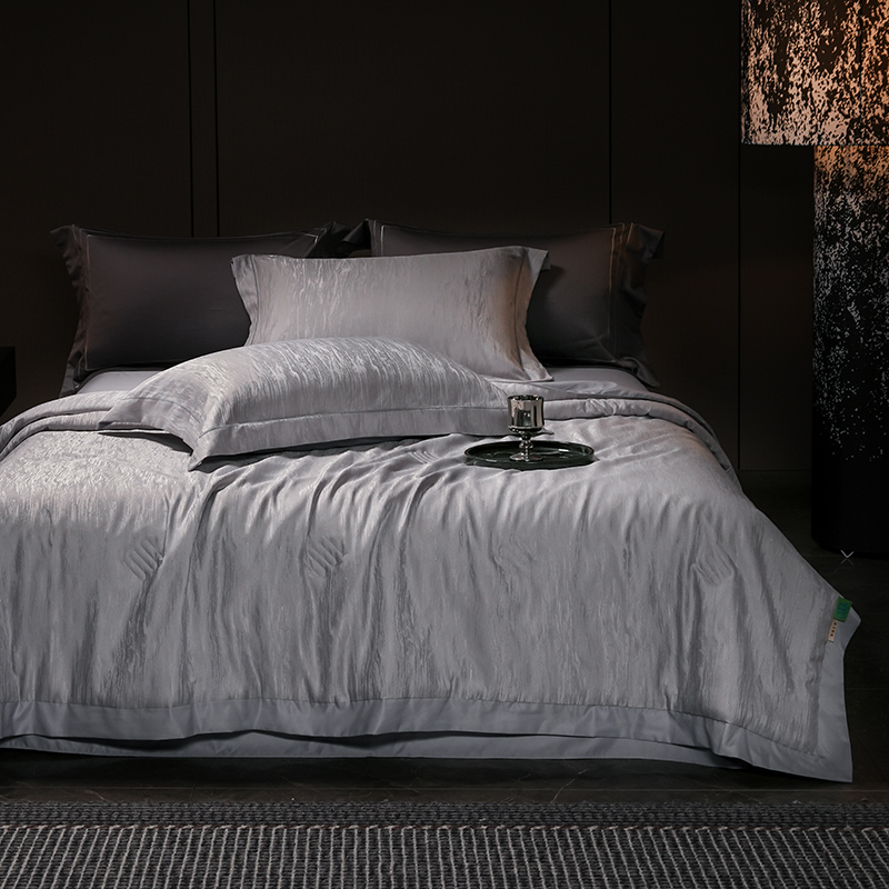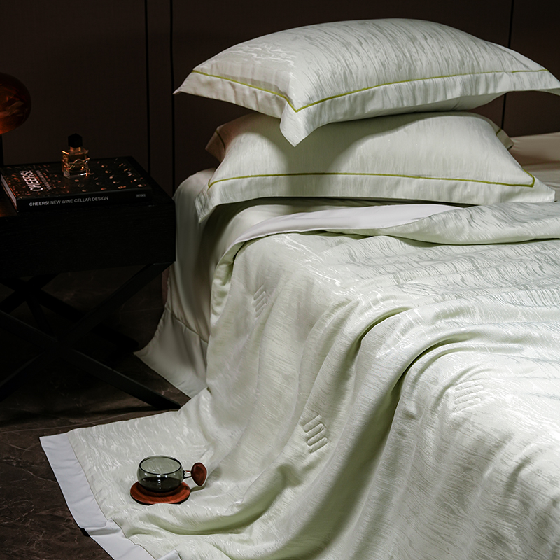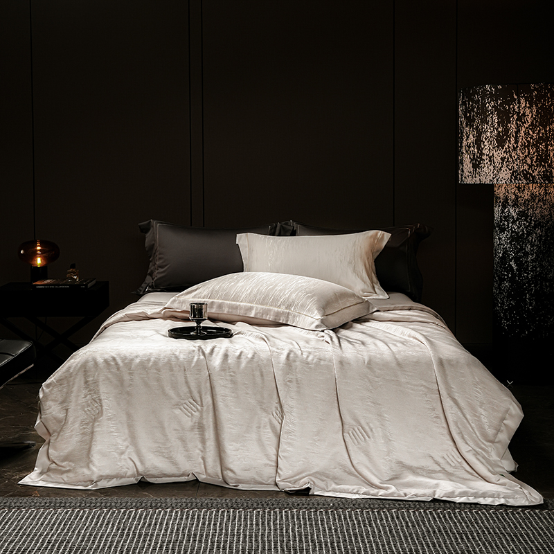 丽卡家纺 2025新款翡丽天丝提花夏被四件套 石纹-黄