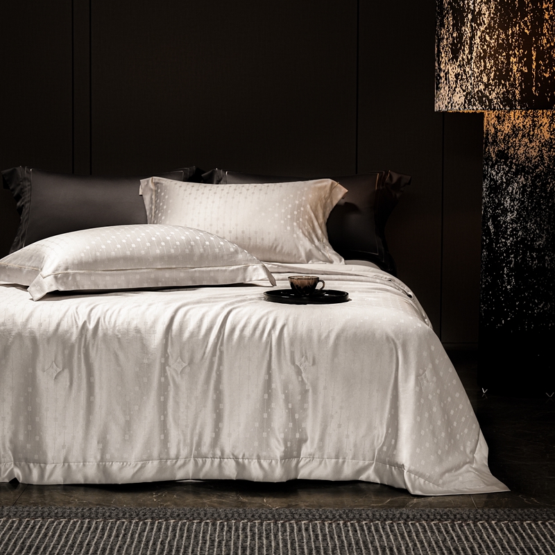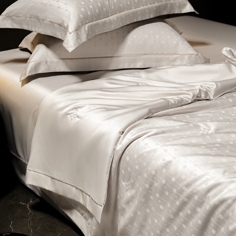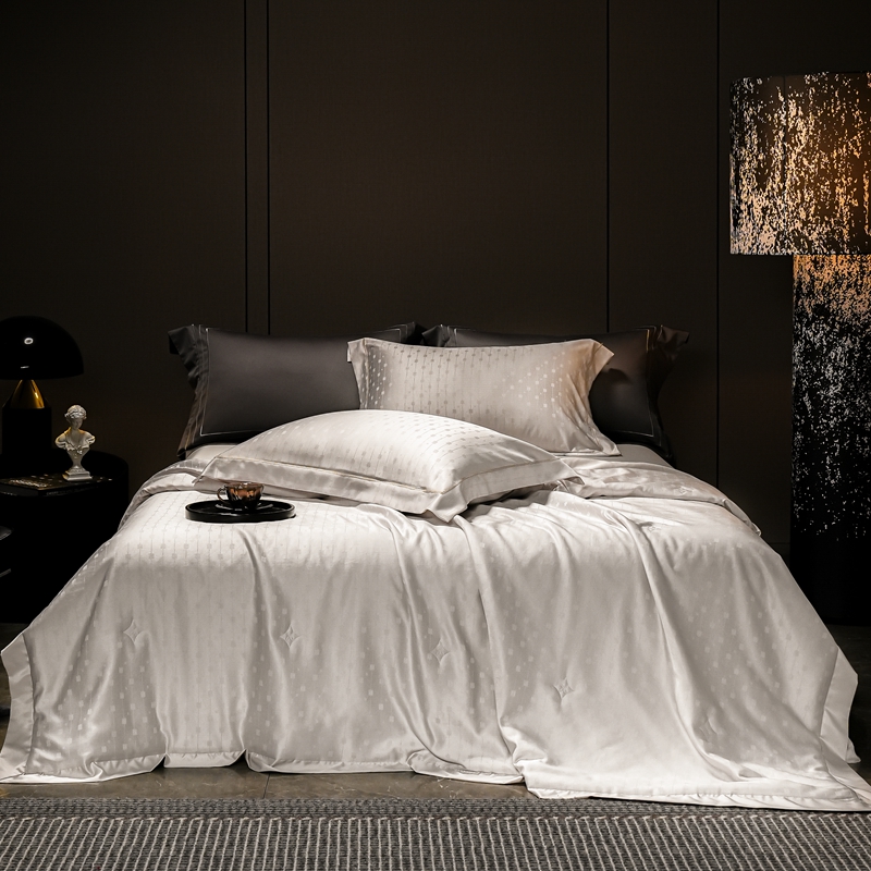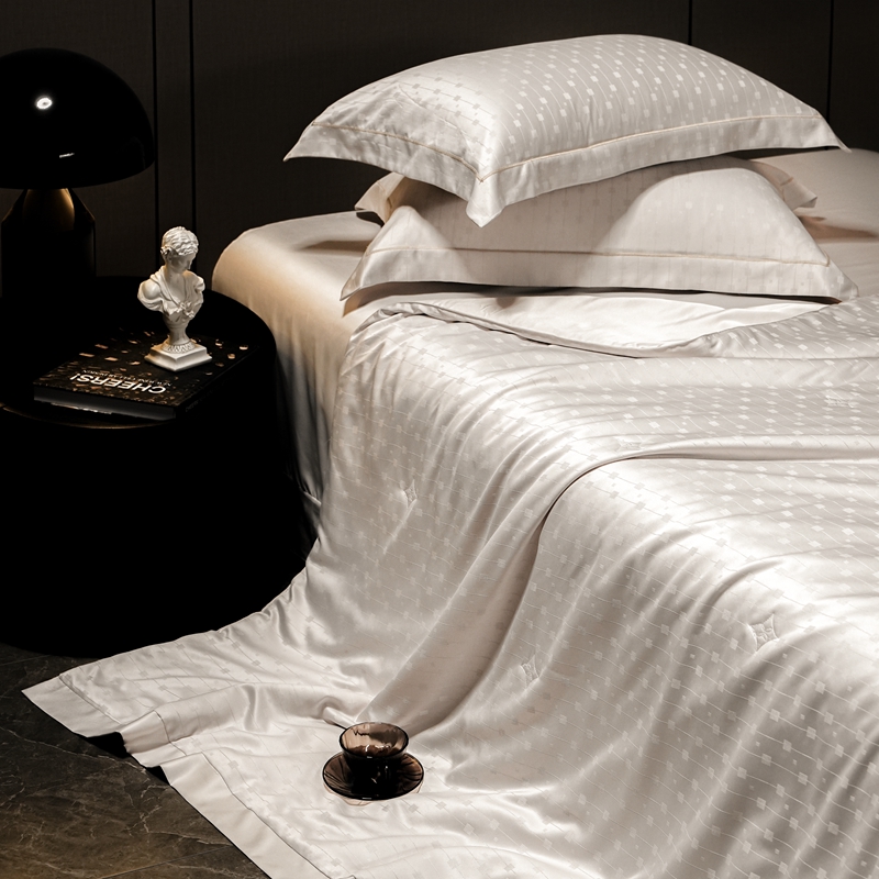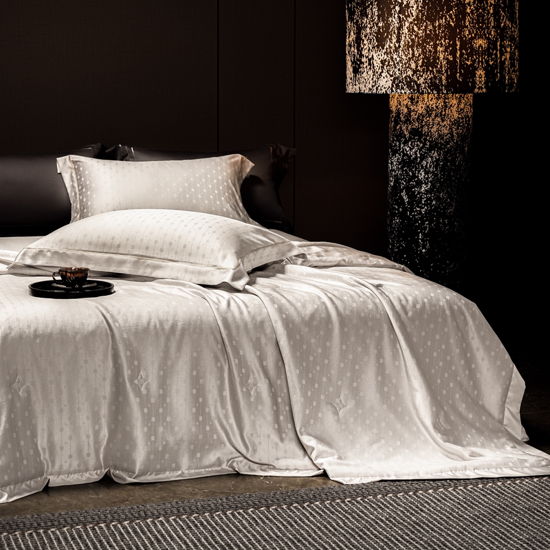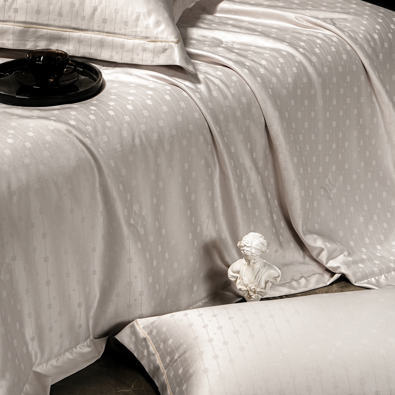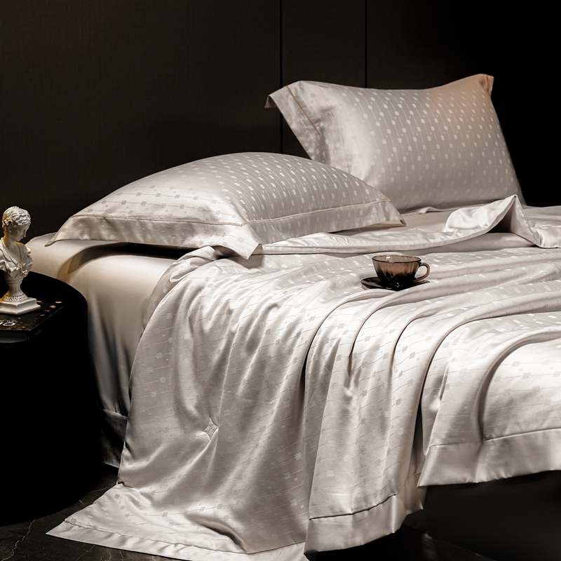 商品名称:2025新款格利亚天丝提花夏被四件套 格子-米灰