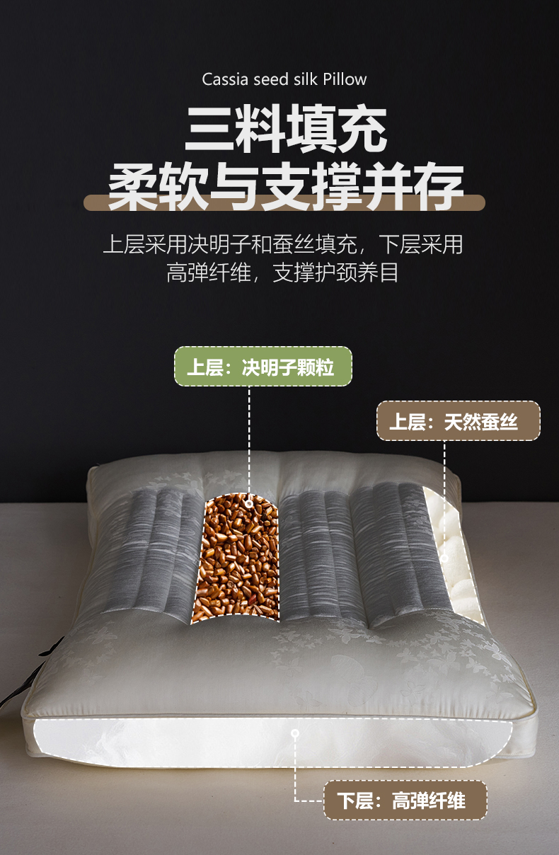 决明子蚕丝枕-灰【单只】