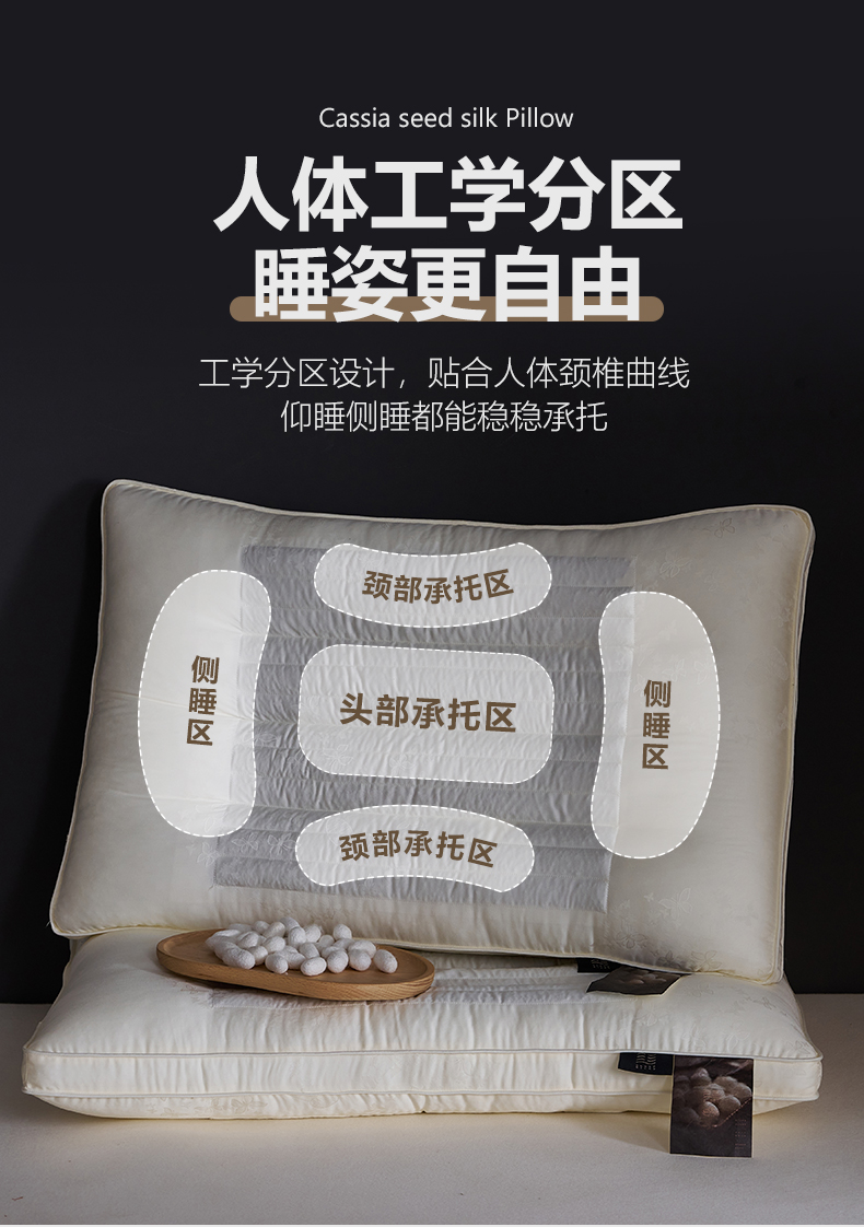 商品名称:乐可 2025新款决明子蚕咝枕枕头枕芯 决明子蚕咝枕-灰