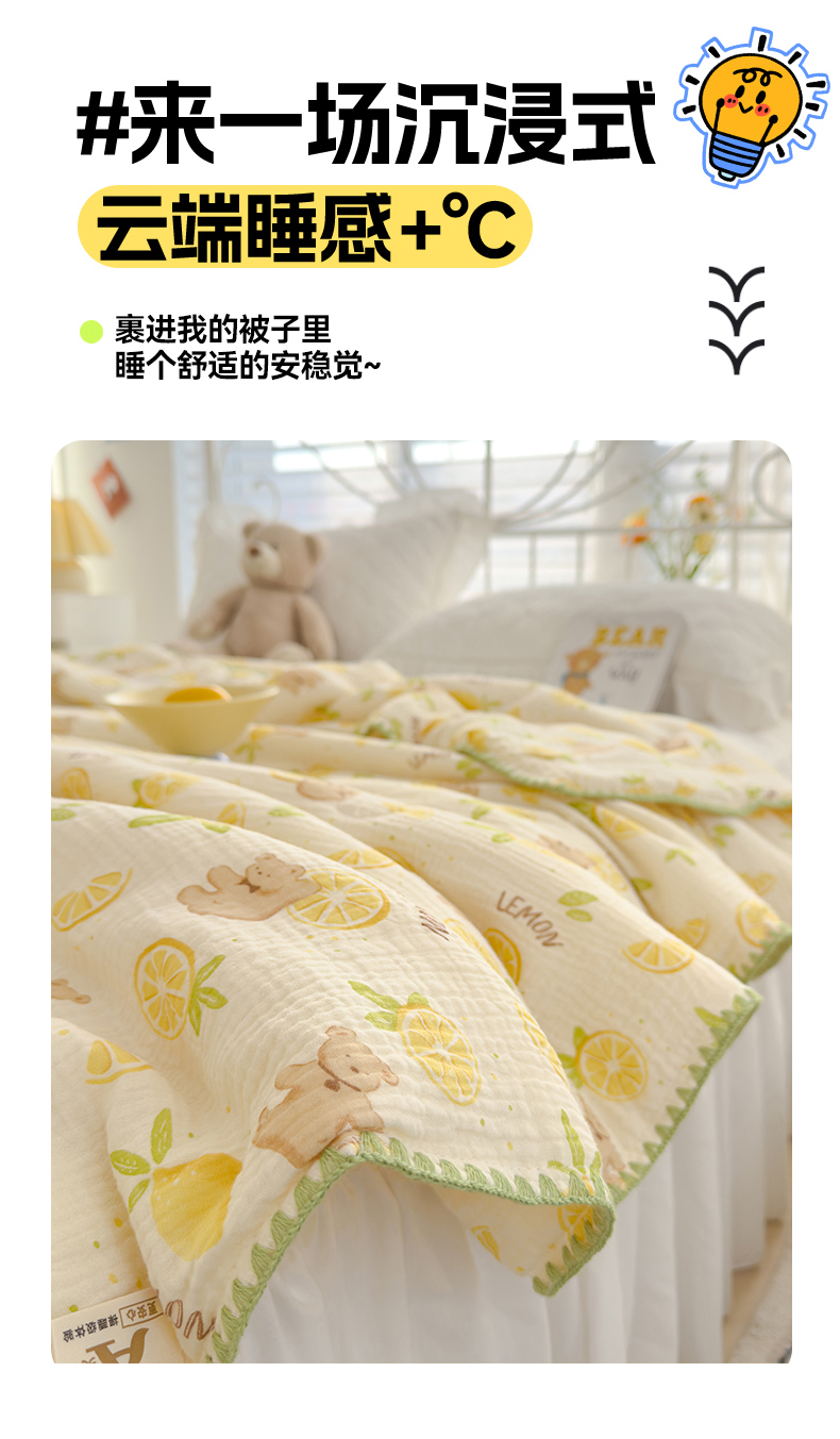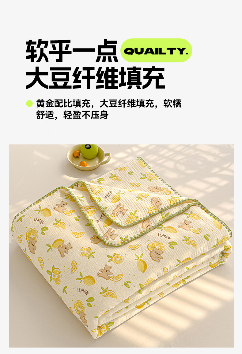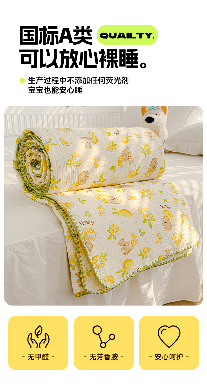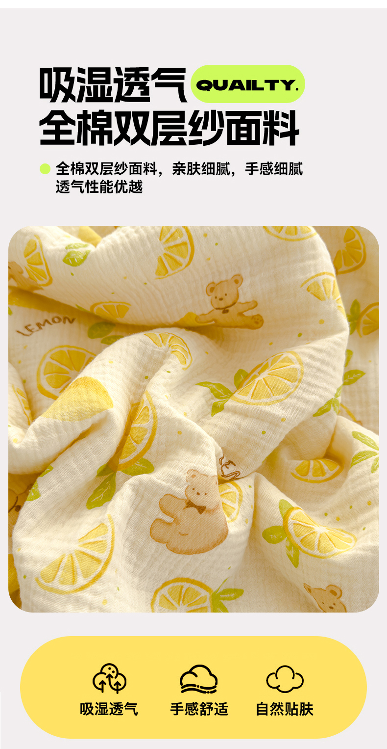 商品名称:芯恋 2025新款母婴级全棉皱皱纱儿童被双层纱夏被 夏日柠檬