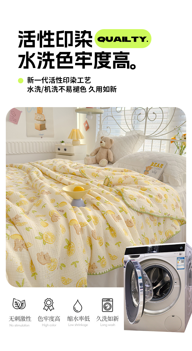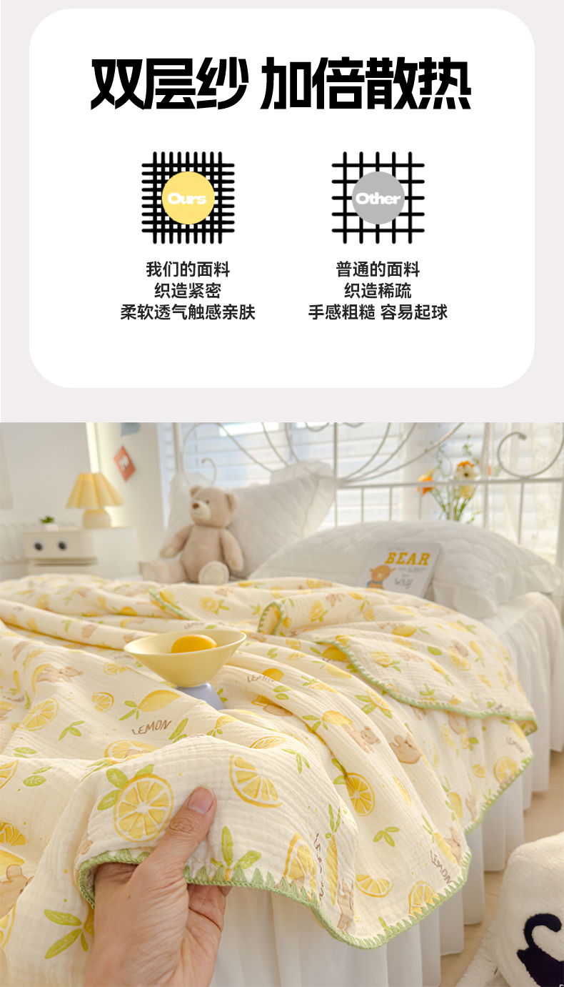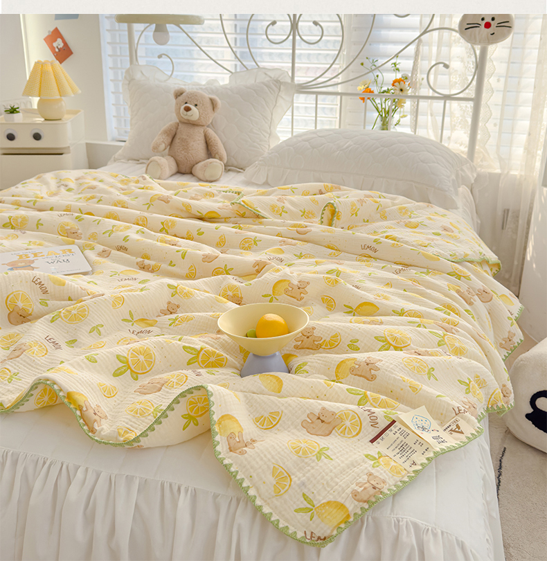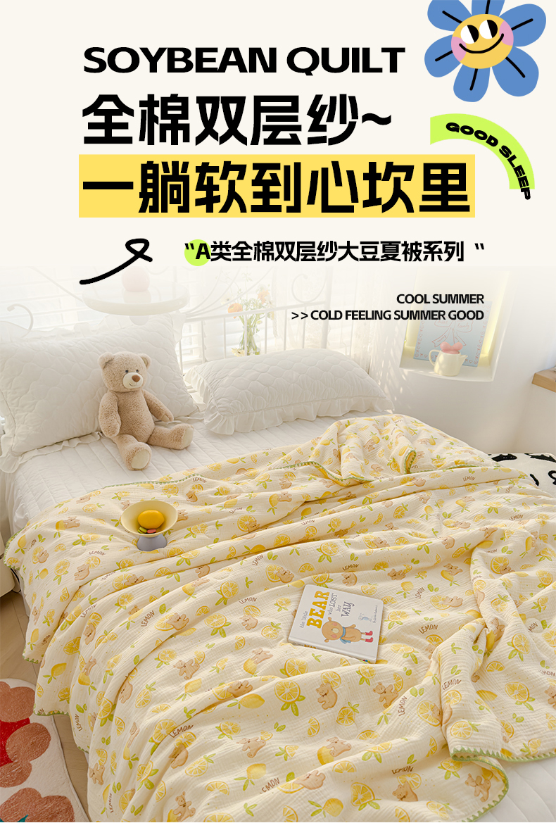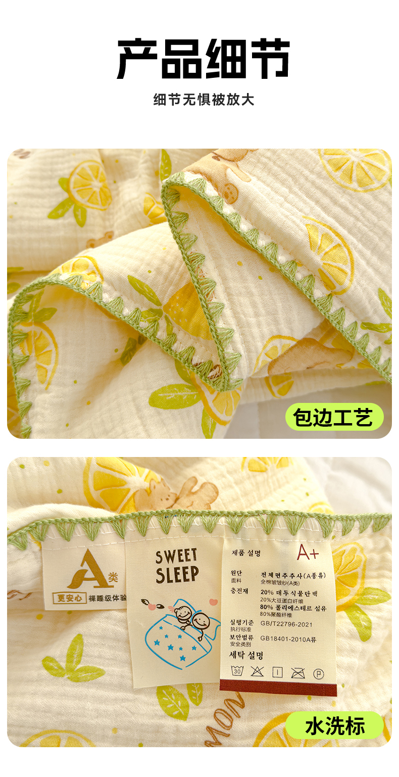 商品名称:芯恋 2025新款母婴级全棉皱皱纱儿童被双层纱夏被 夏日柠檬