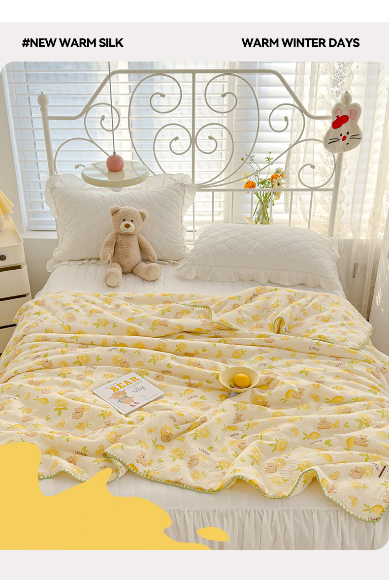 芯恋 2025新款母婴级全棉皱皱纱儿童被双层纱夏被 夏日柠檬