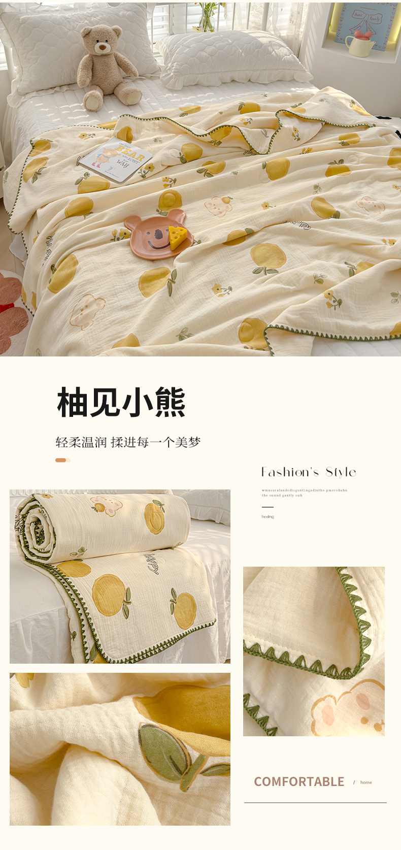 商品名称:芯恋 2025新款母婴级全棉皱皱纱儿童被双层纱夏被 柚见小熊