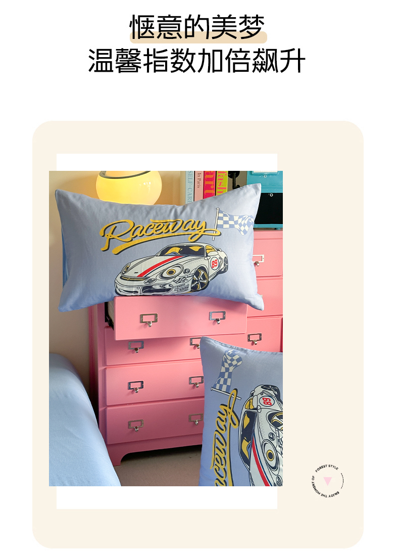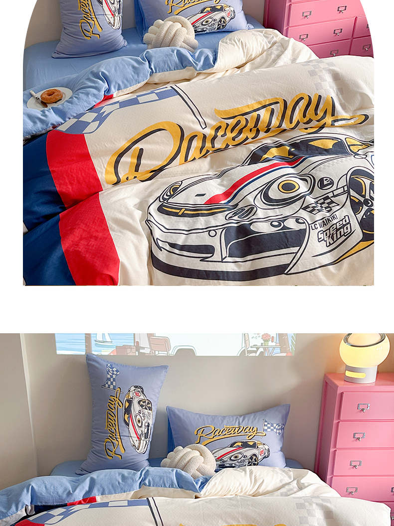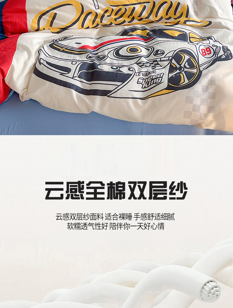 商品名称:2025新款设计师专版全棉双层纱四件套 速度之王
